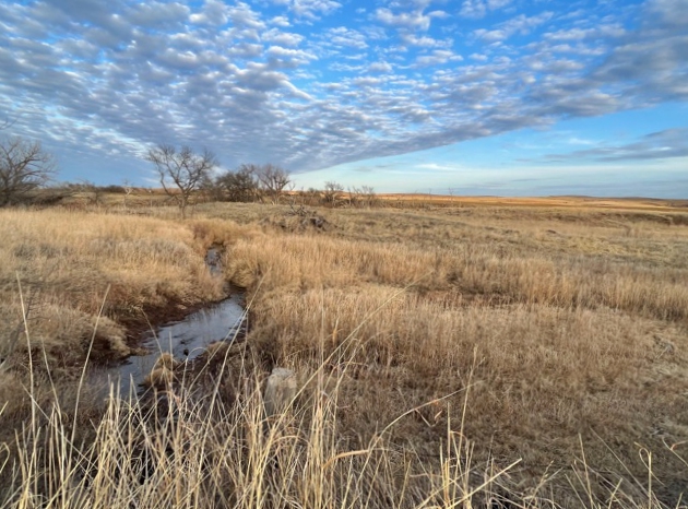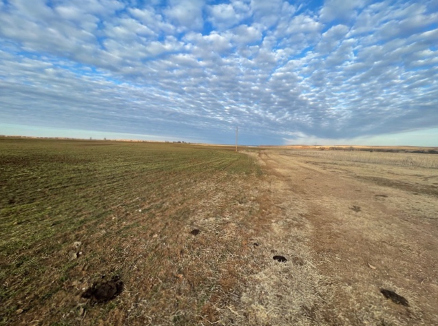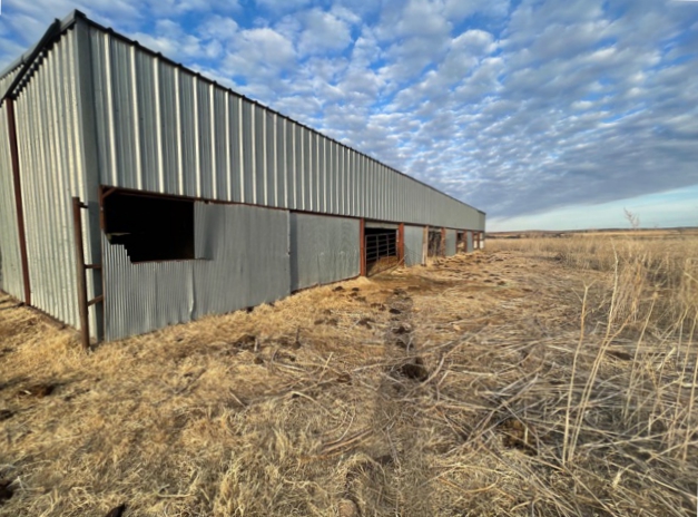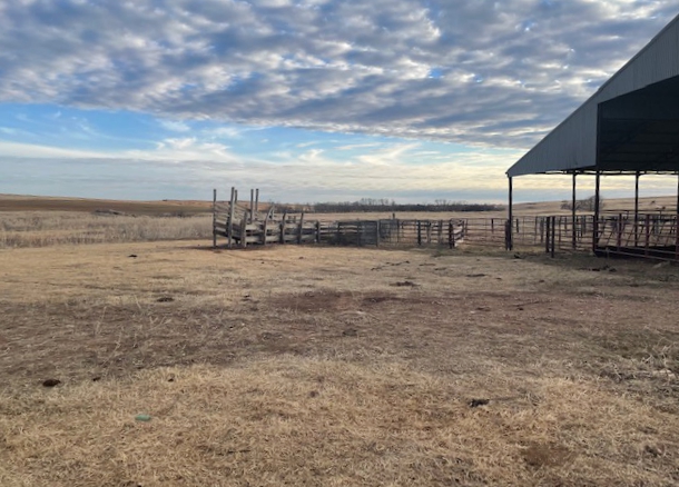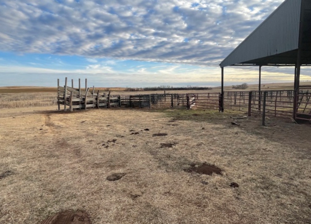 634 Acres of Cropland currently in Wheat and the balance in Native Grass. 400 Acres in Section 31 & 32-26-19, the Buffalo Creek runs thru the north end. On the south side of the County Road 17 is 640 acres in Section 6 with two buildings, corrals and cattle scales. Elm Creek runs thru this section. This is a very good farm with good fences all the way around. Across the county road to the east in section 5 is 240 acres with a live creek, a set of steel corrals, farm ground, and native grass.