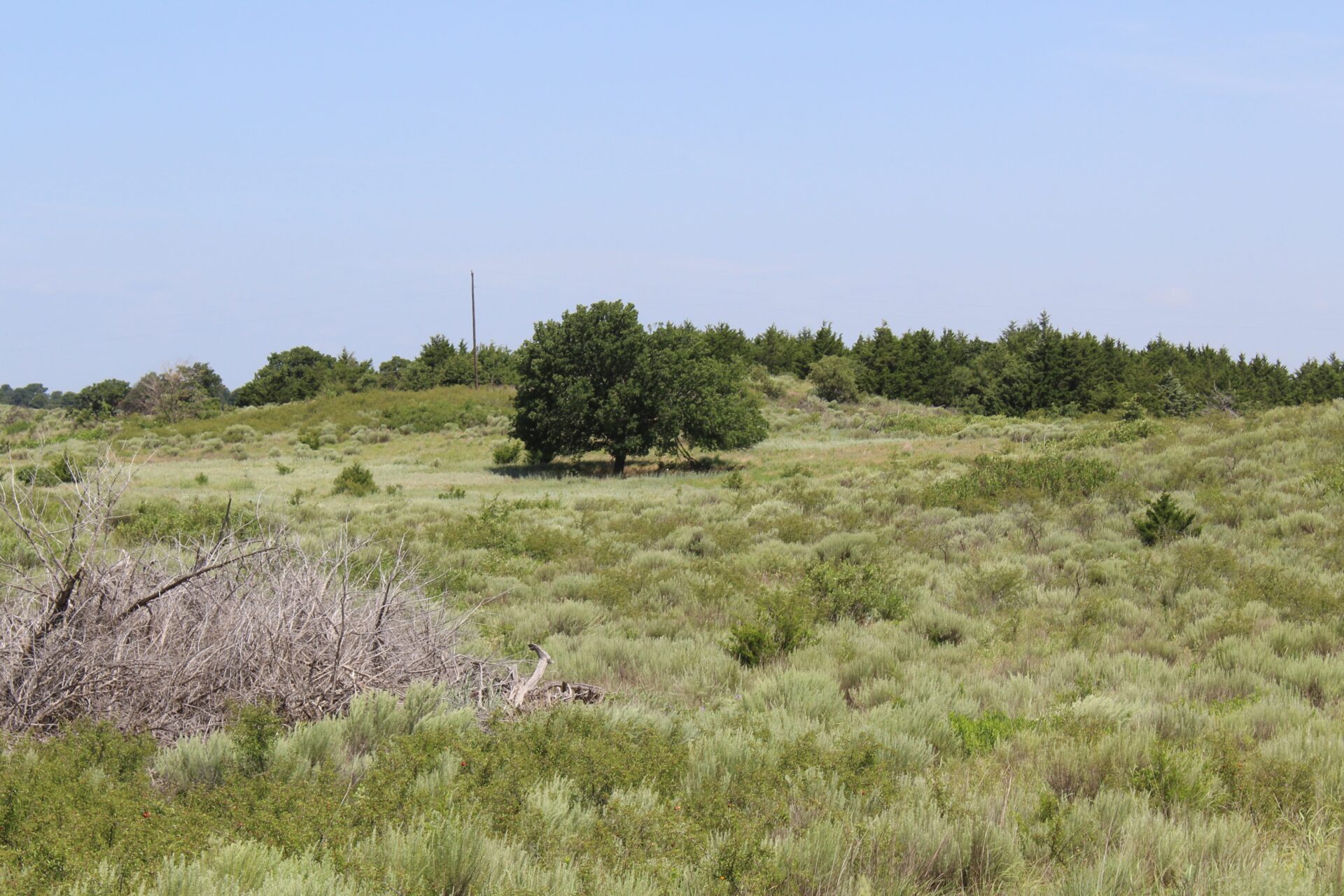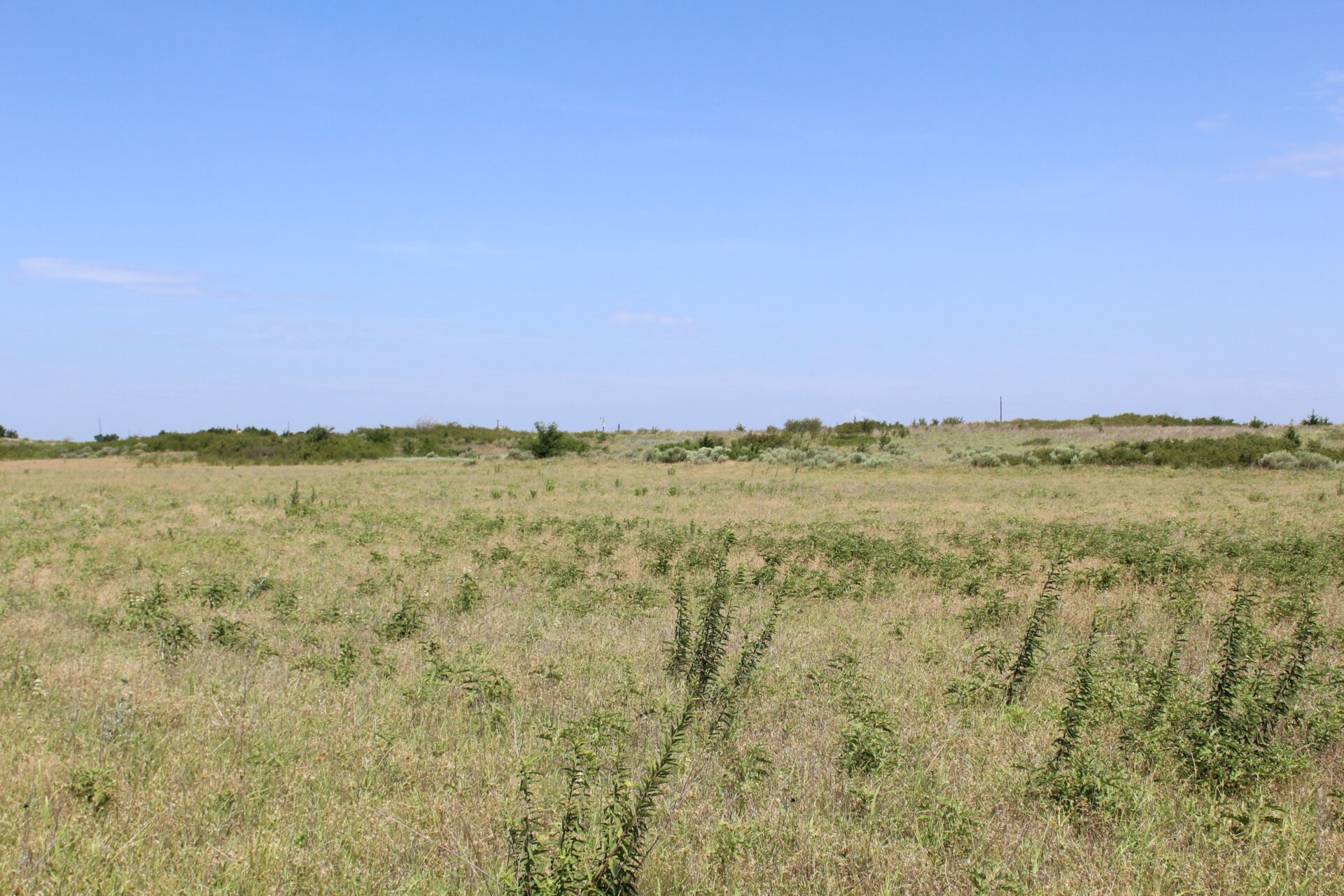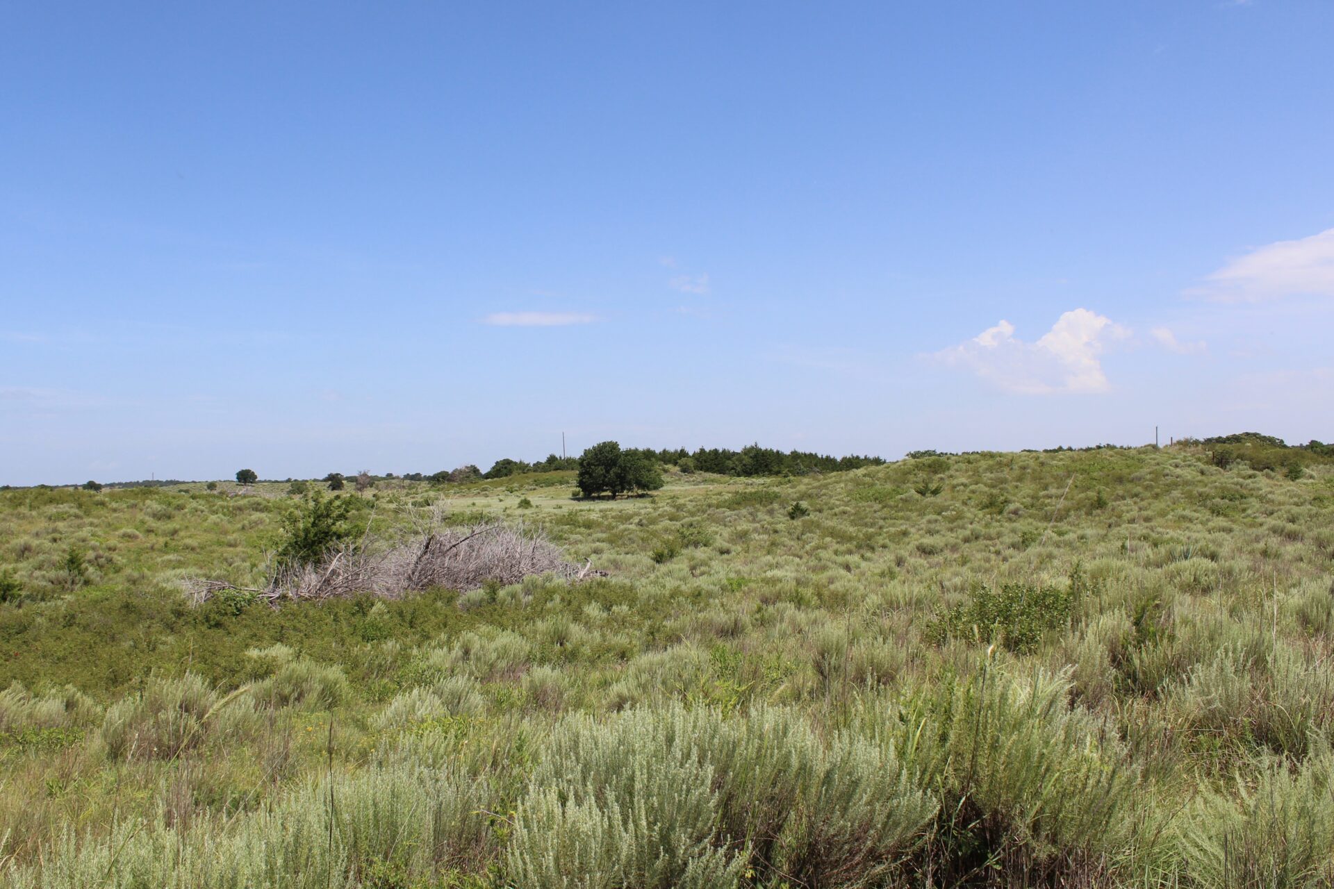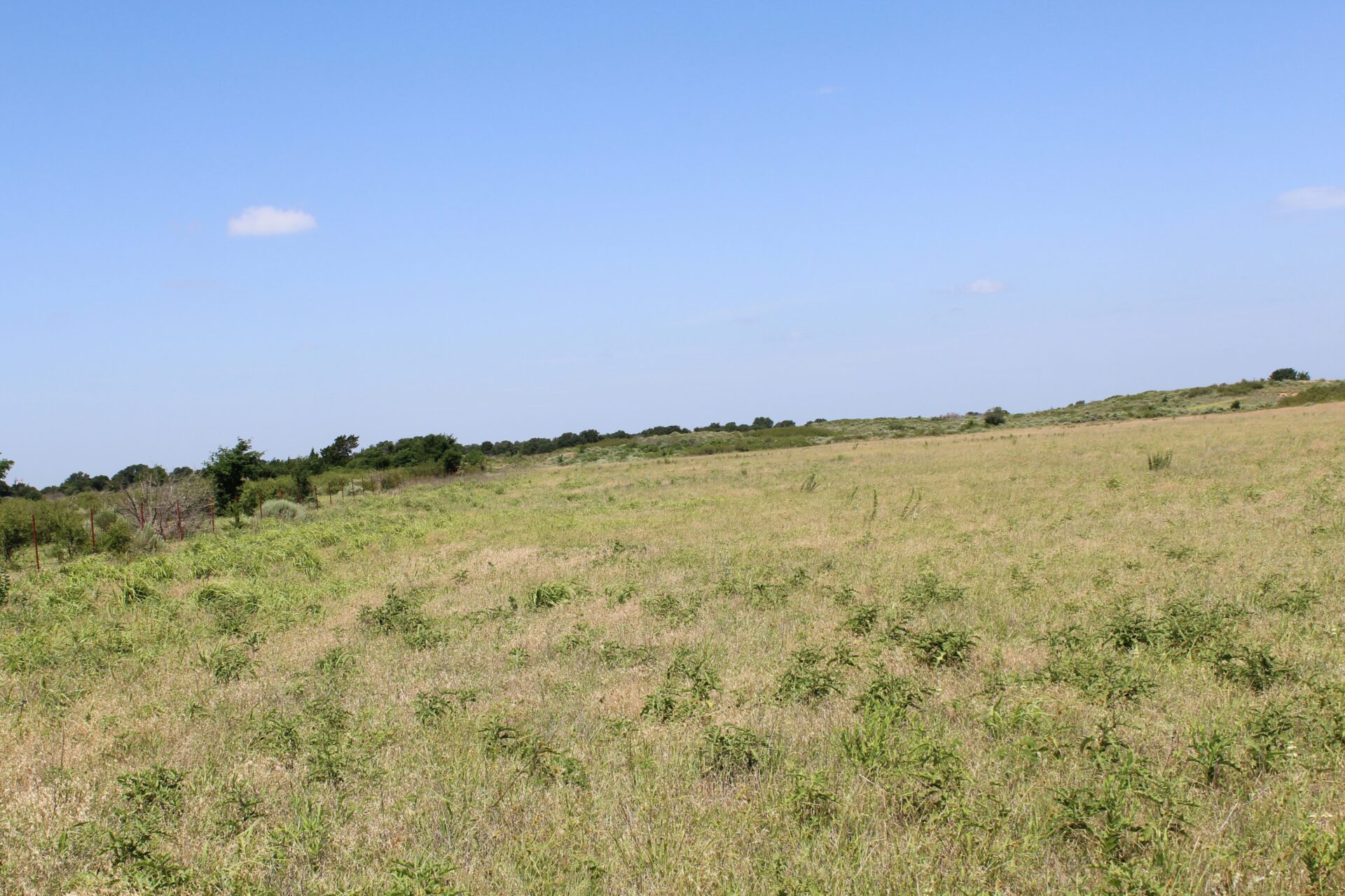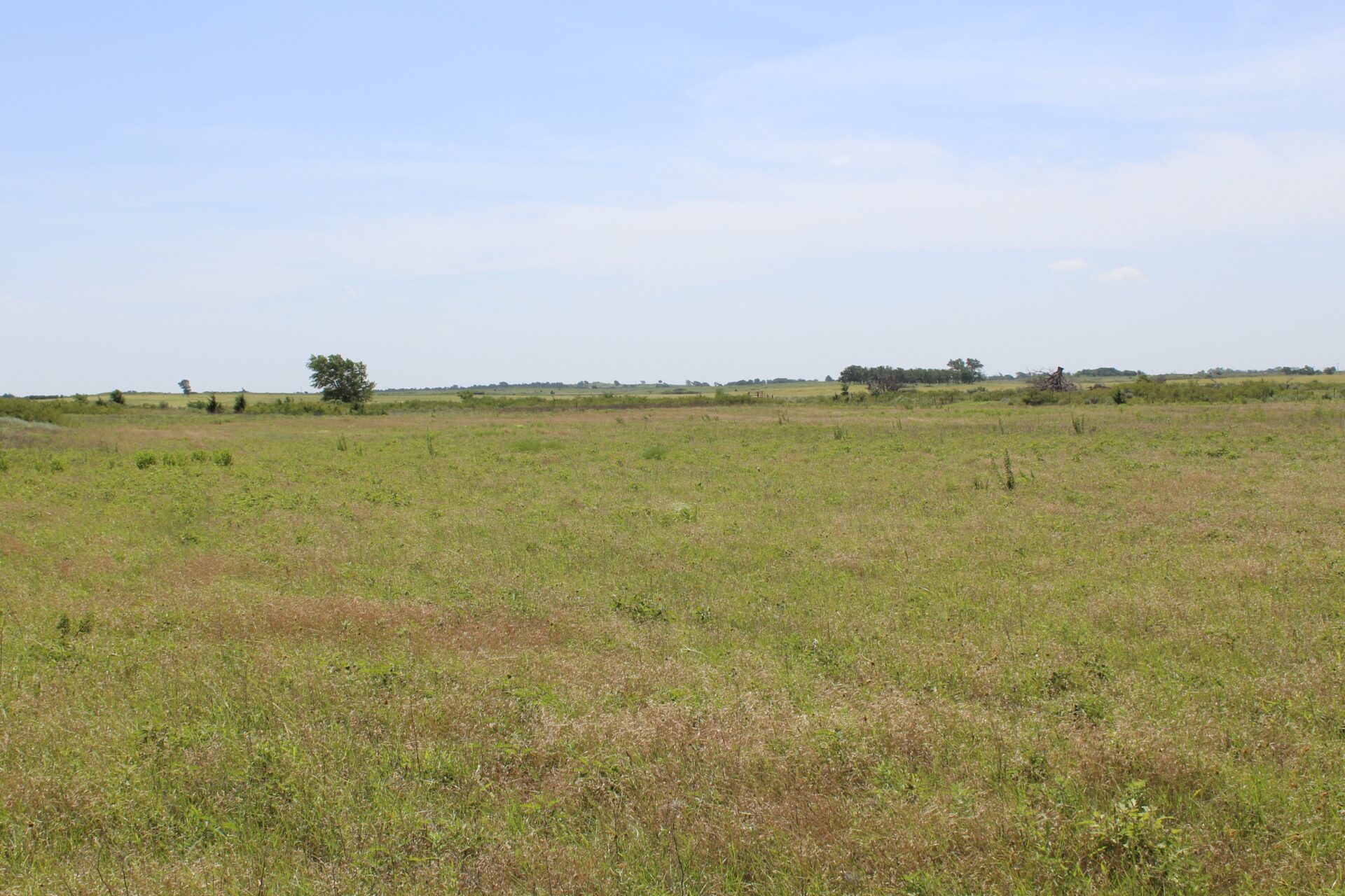 This tract of land is a mild rolling type terrain that includes a water well, electricity, and a septic system. There is also a set of pipe corrals on the property. A grass field was previously used as farm ground and could be a very good wildlife food plot. The land is fenced with 5 wire barb fencing on all four sides with county road access on the north and east sides. The west side has a more sandhill rolling type terrain with brush and plum thickets which provide for excellent deer habitat.