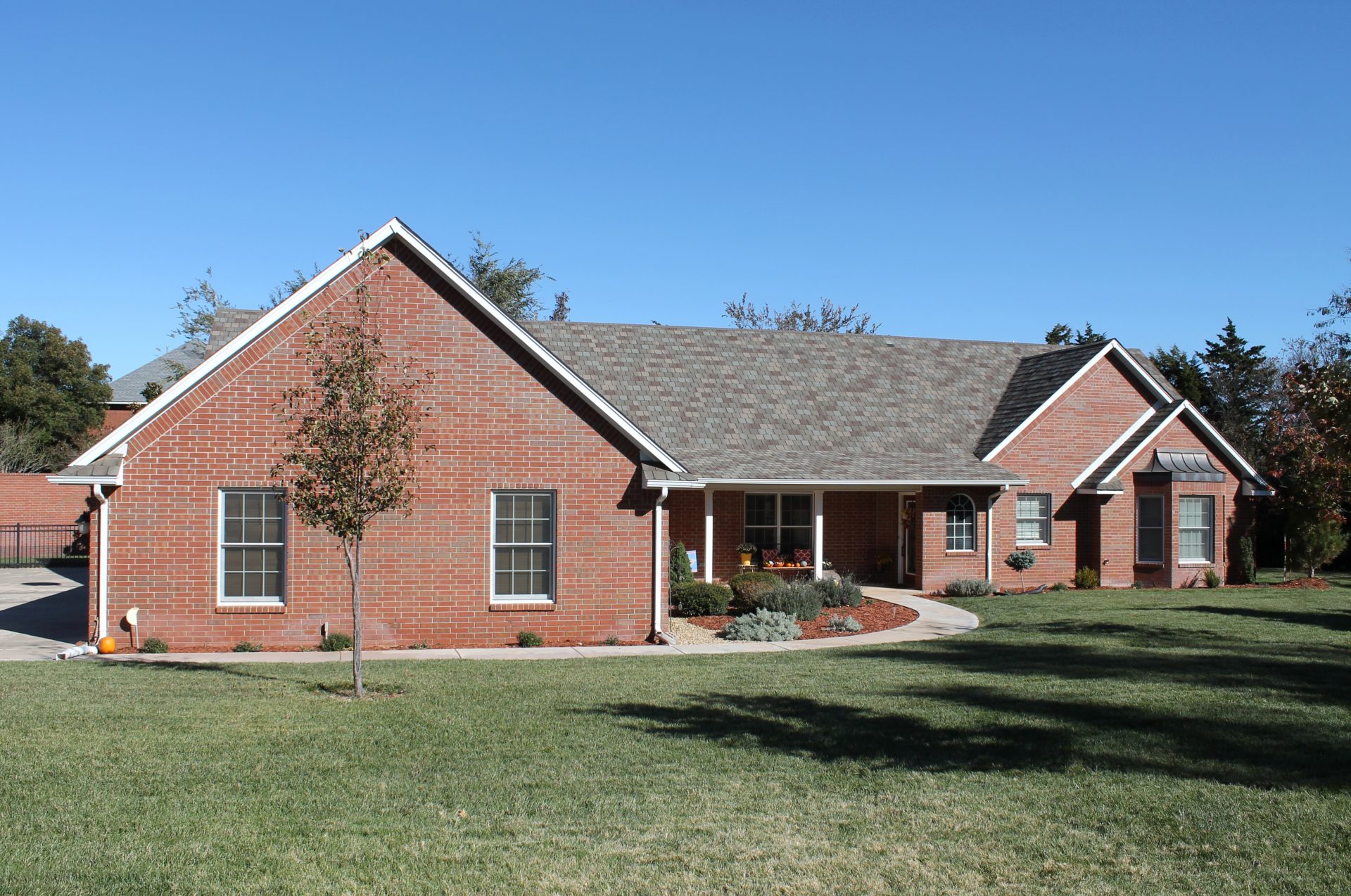 This home sits in a quiet, country setting. The main floor has 3 bedrooms, 3 baths, large utility room and a spacious, open kitchen-dining-living area. Attached 3-car garage has ample storage with cabinets along the back wall. Bedroom #4 and 4th bath is above in the half story, including a large bonus room and more storage! All bedrooms have walk-in closets and master closet is a storm room. Master bath has been remodeled with new vanity. Walk-in closet off master bathroom with built-in cabinets. When the Oklahoma storms hit and knocks out the power, this home gives you peace of mind with a generator that operates automatically. The fireplace has direct heat into the home. Nice privacy brick wall and iron fence keeps you secluded. Enjoy the deer and turkeys running through the yard.