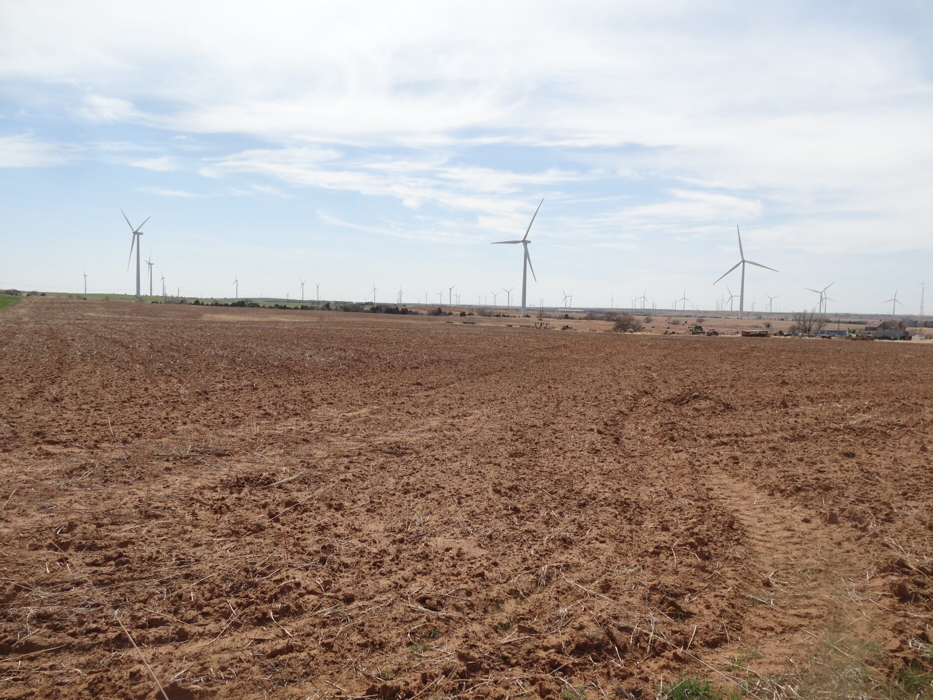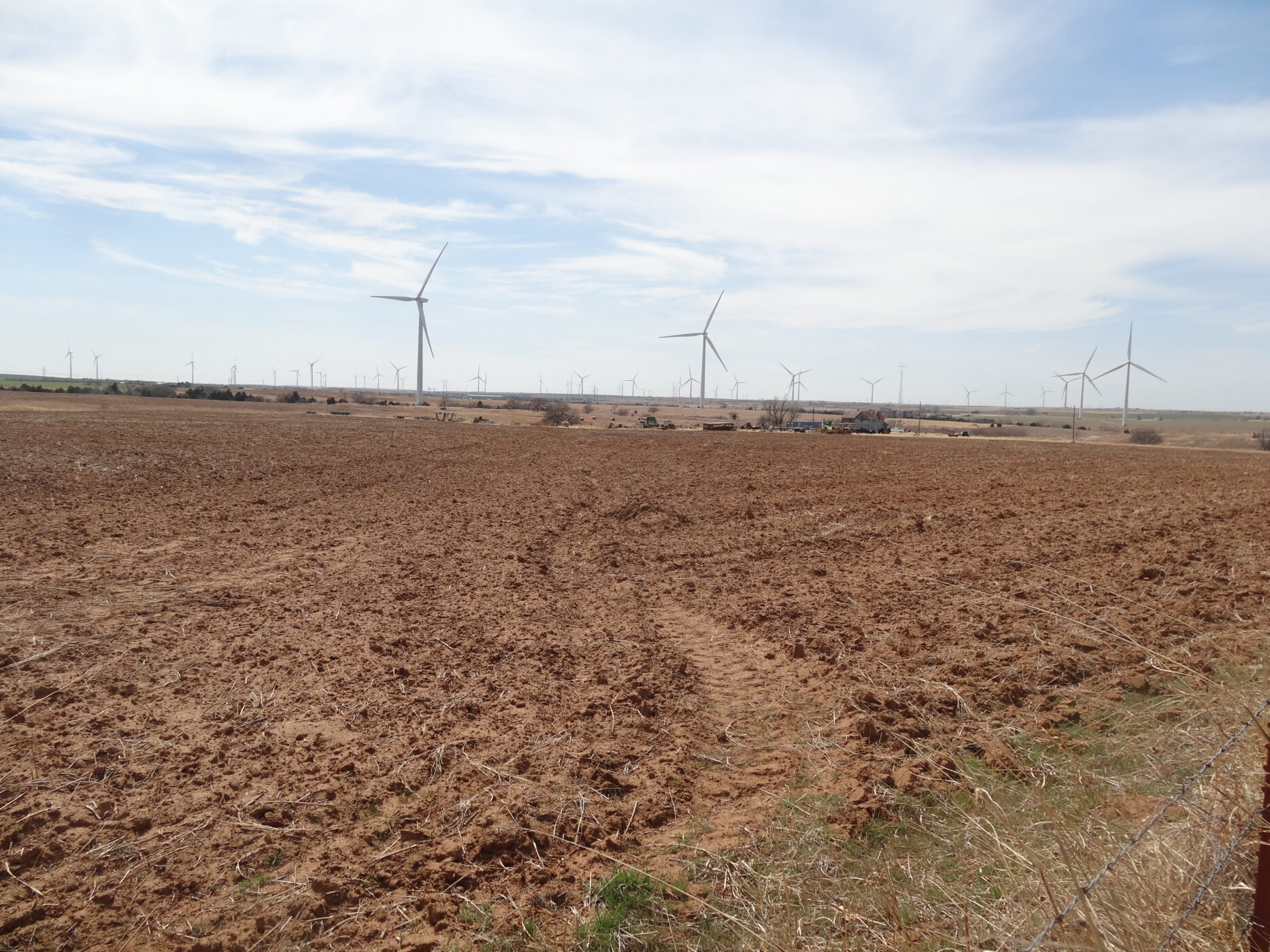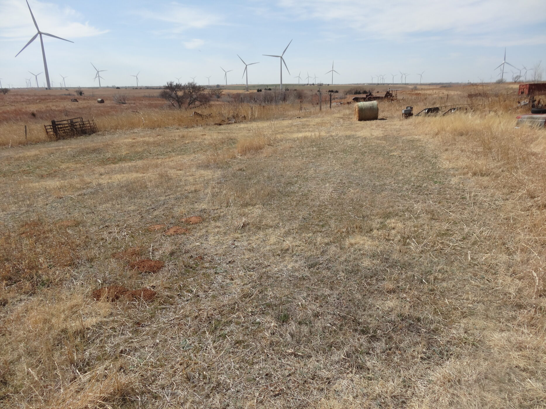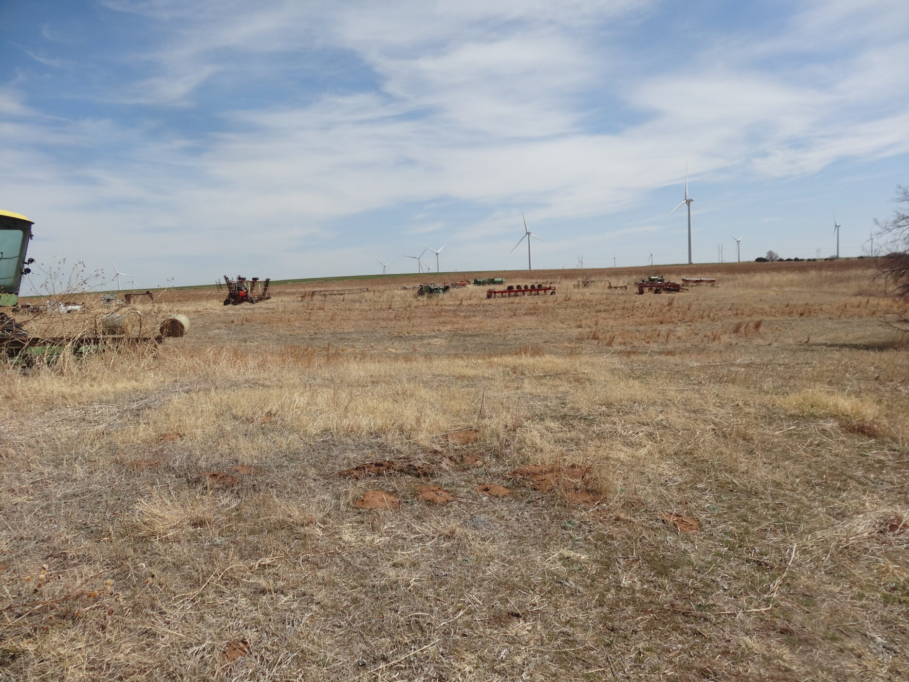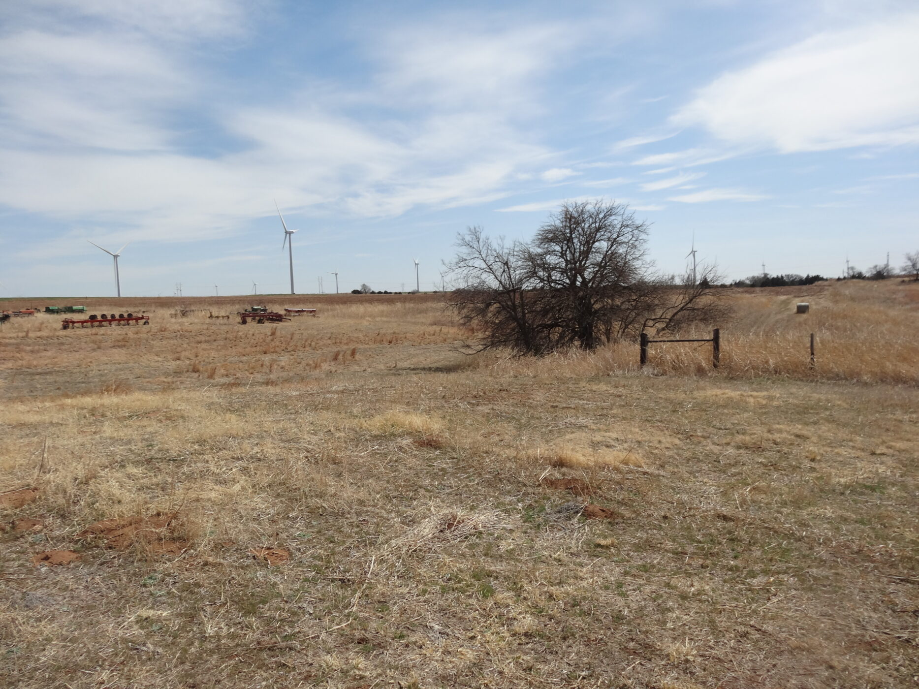 100± acres of good land with some cropland and the balance in native grass. A creek bed is on the west side of the property and a beautiful overlook draw to the west that would make an impressive place to build a home. There is an older home with electricity and a water well and blacktop county road frontage. The wind revenue will sell with the farm and is currently paying approx. $5000/per year with only 5 years in production.
