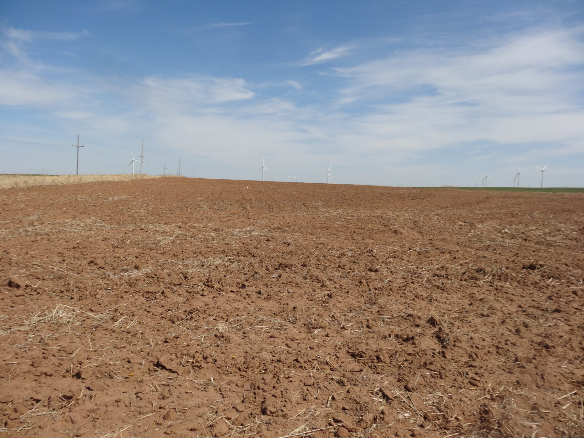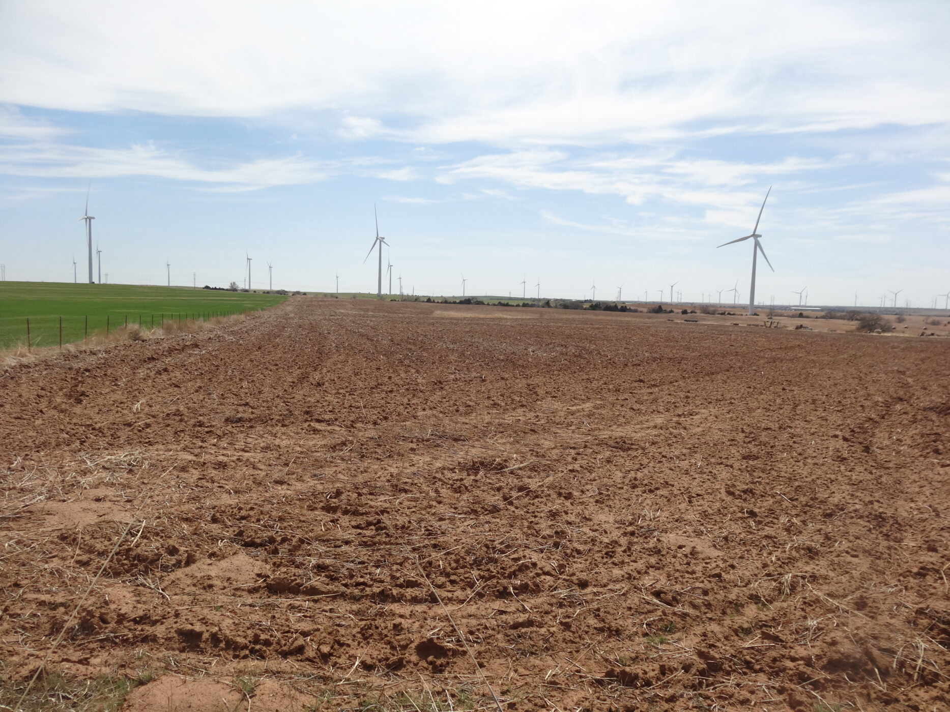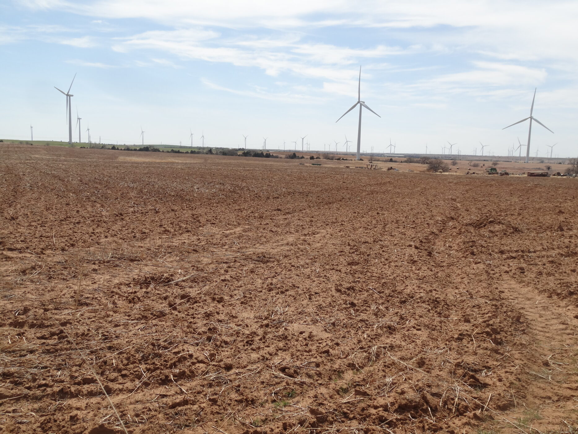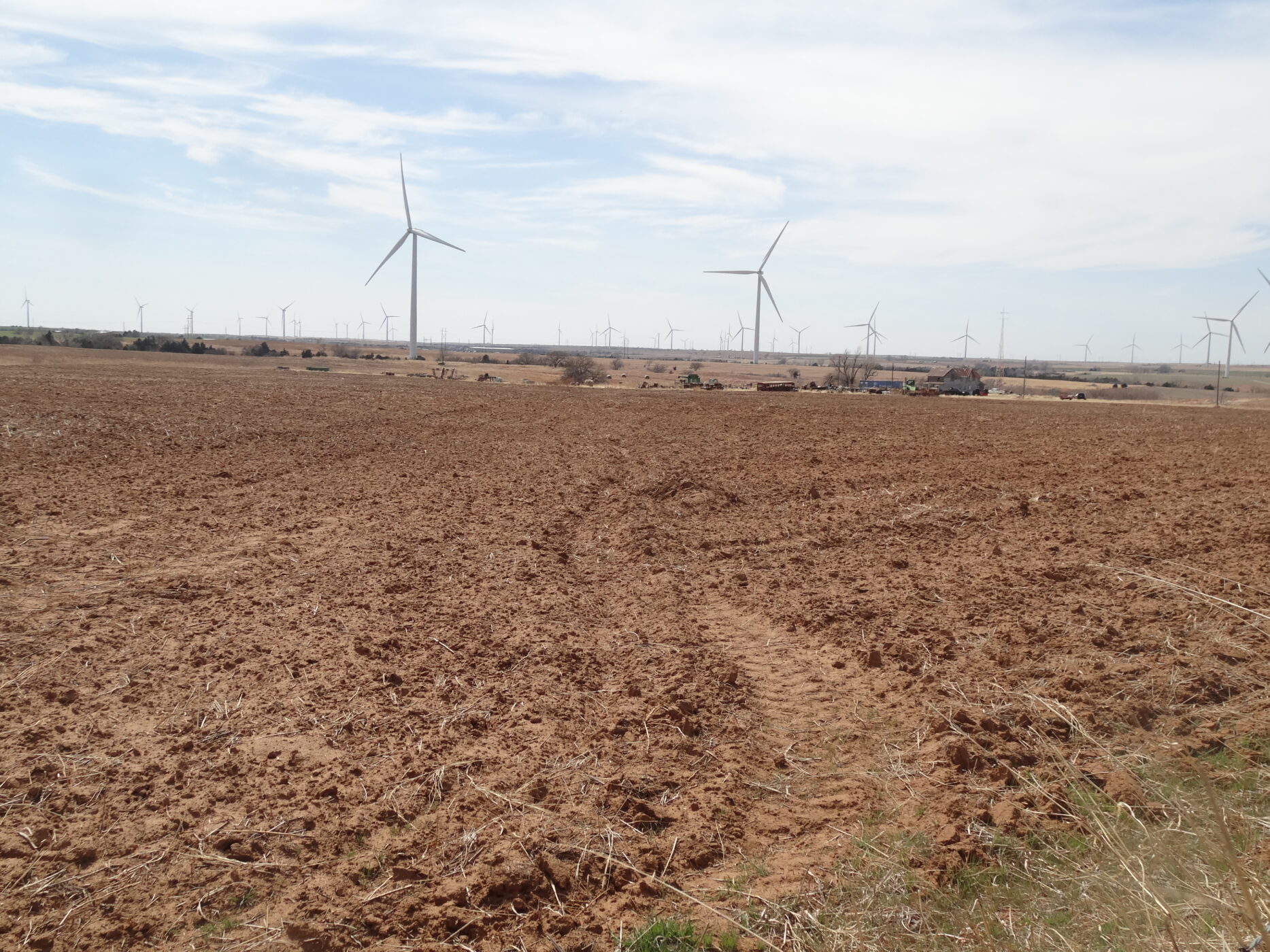 100± acres of good land with some cropland and the balance in native grass. A creek bed is on the west side of the property and a beautiful overlook draw to the west that would make an impressive place to build a home. There is an older home with electricity and a water well and blacktop county road frontage. The wind revenue will sell with the farm and is currently paying approx. $5000/per year with only 5 years in production.