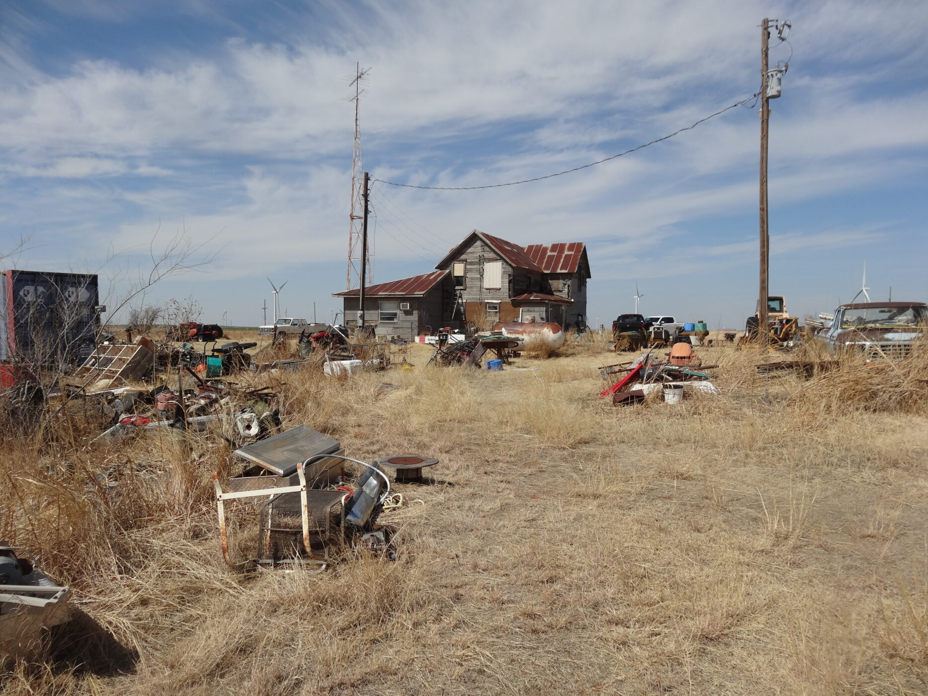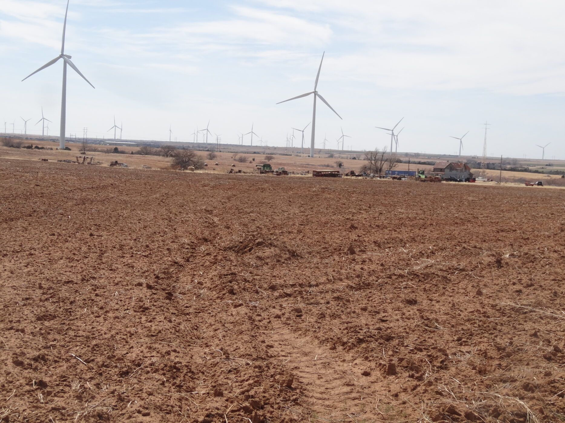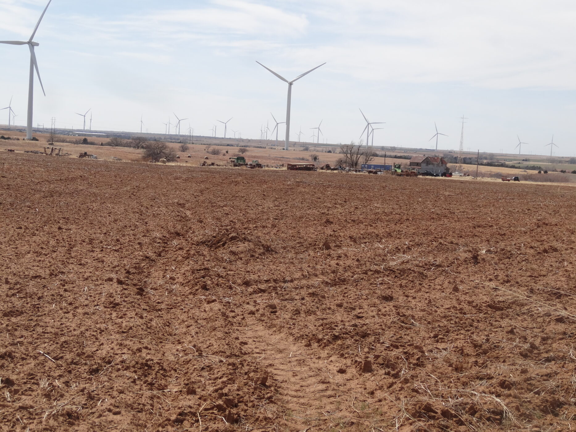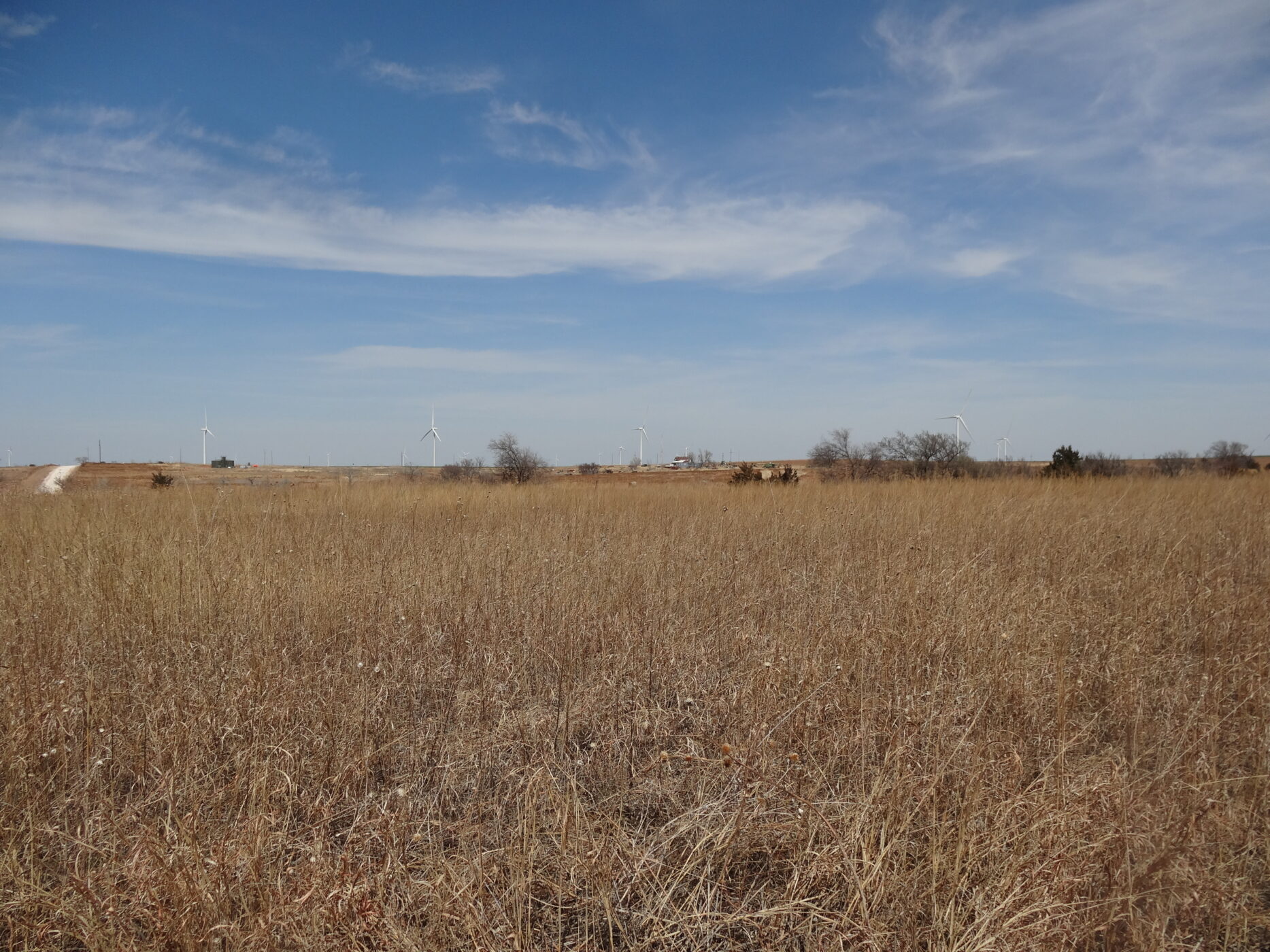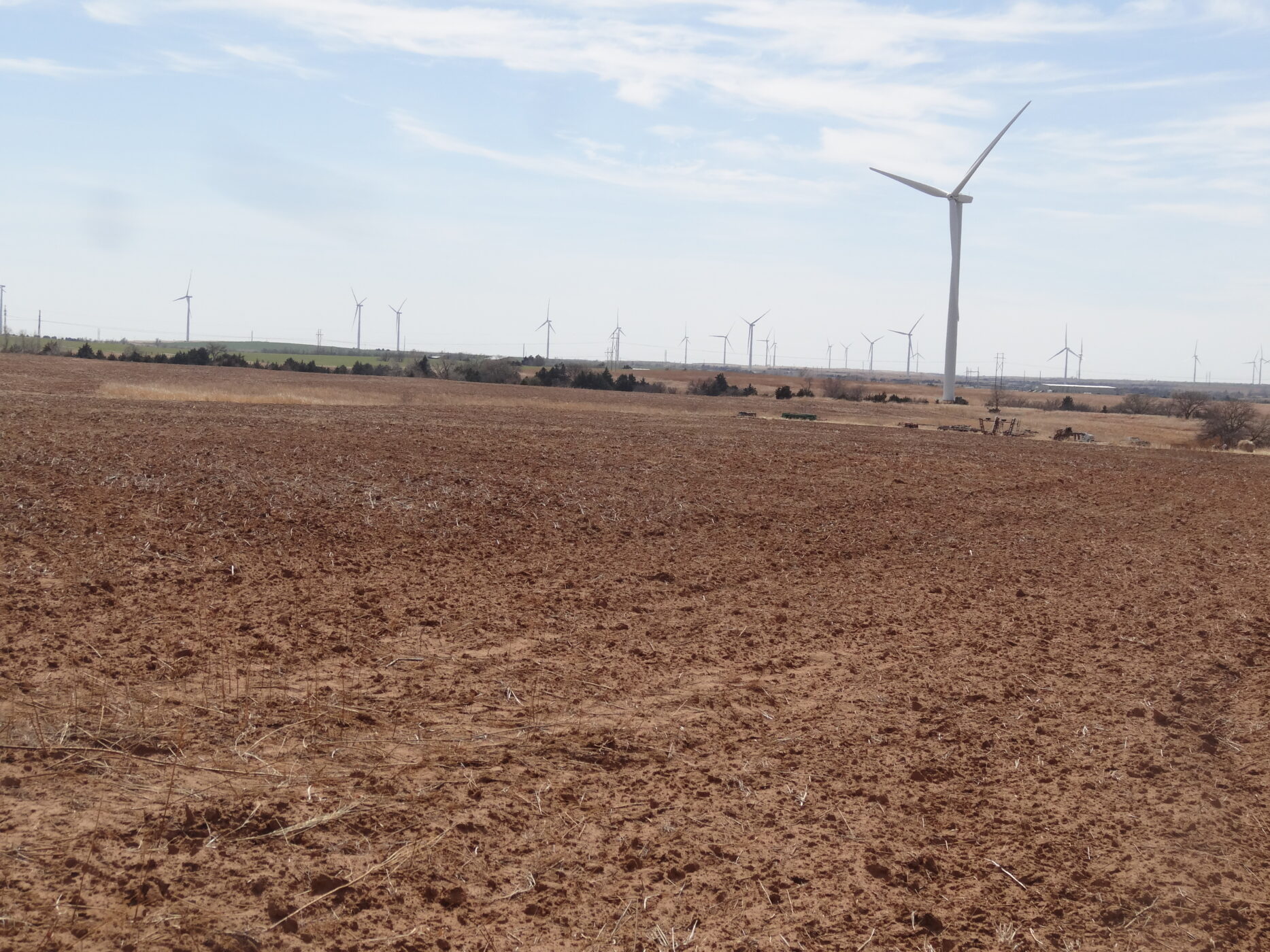 100± acres of good land with some cropland and the balance in native grass. A creek bed is on the west side of the property and a beautiful overlook draw to the west that would make an impressive place to build a home. There is an older home with electricity and a water well and blacktop county road frontage. The wind revenue will sell with the farm and is currently paying approx. $5000/per year with only 5 years in production.