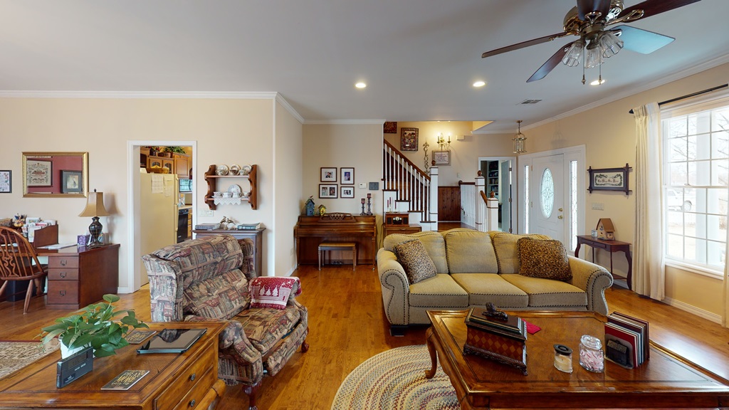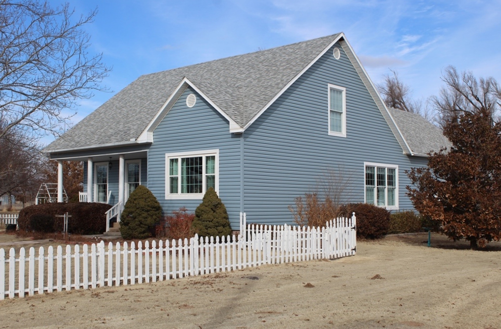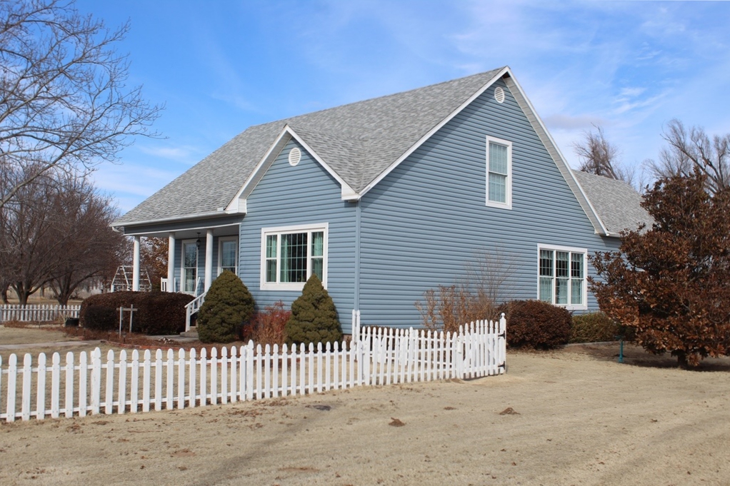 Custom built in 1999 this beautiful 3 bedroom 2 ½ bathroom custom home is located perfectly on nearly 3 acres of land! You’ll fall in love before you ever go inside! From the many trees, to the picket fence, to the entering the red door this home magazine cover worthy! Upon entry you’ll find beautiful hardwood flooring in the spacious living and dining area. The dining area has French doors that open to a pergola and deck! The main floor also features the master bedroom with full bath, kitchen with hardwood cabinets, double oven, pantry, breakfast area, ½ bath, and laundry room. Upstairs features a full bath, 2 large bedrooms with tons of closet and storage space. This home features Pella & Progressive Windows. The home has an attached 2 car garage, water softener, reverse osmosis water, lawn sprinkler system, above ground tornado shelter, workshop with heat/air. There are several apricot, pear, and nectarine trees. Be sure and come to the open house events or schedule a private tour! Or visit our website or take a virtual tour at https://my.matterport.com/show/?m=Yp153s6WZX8 or contact Buck Hutchens 580-273-3202 auction manager.
