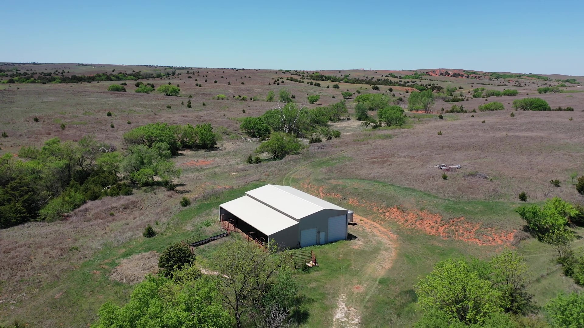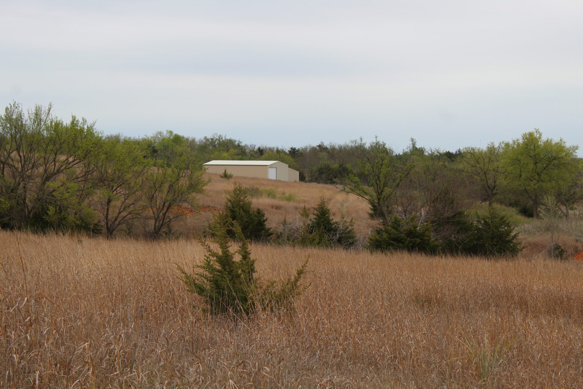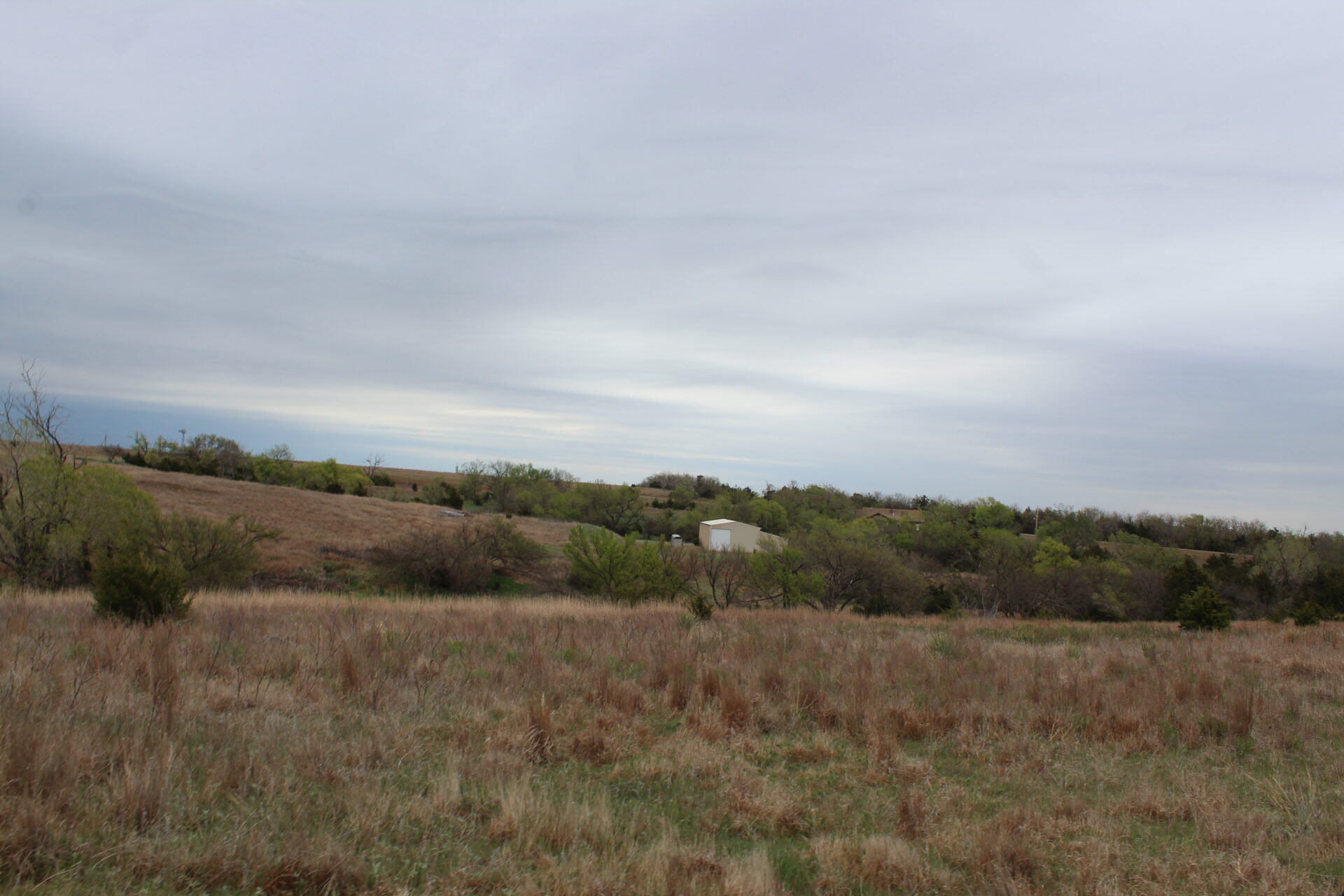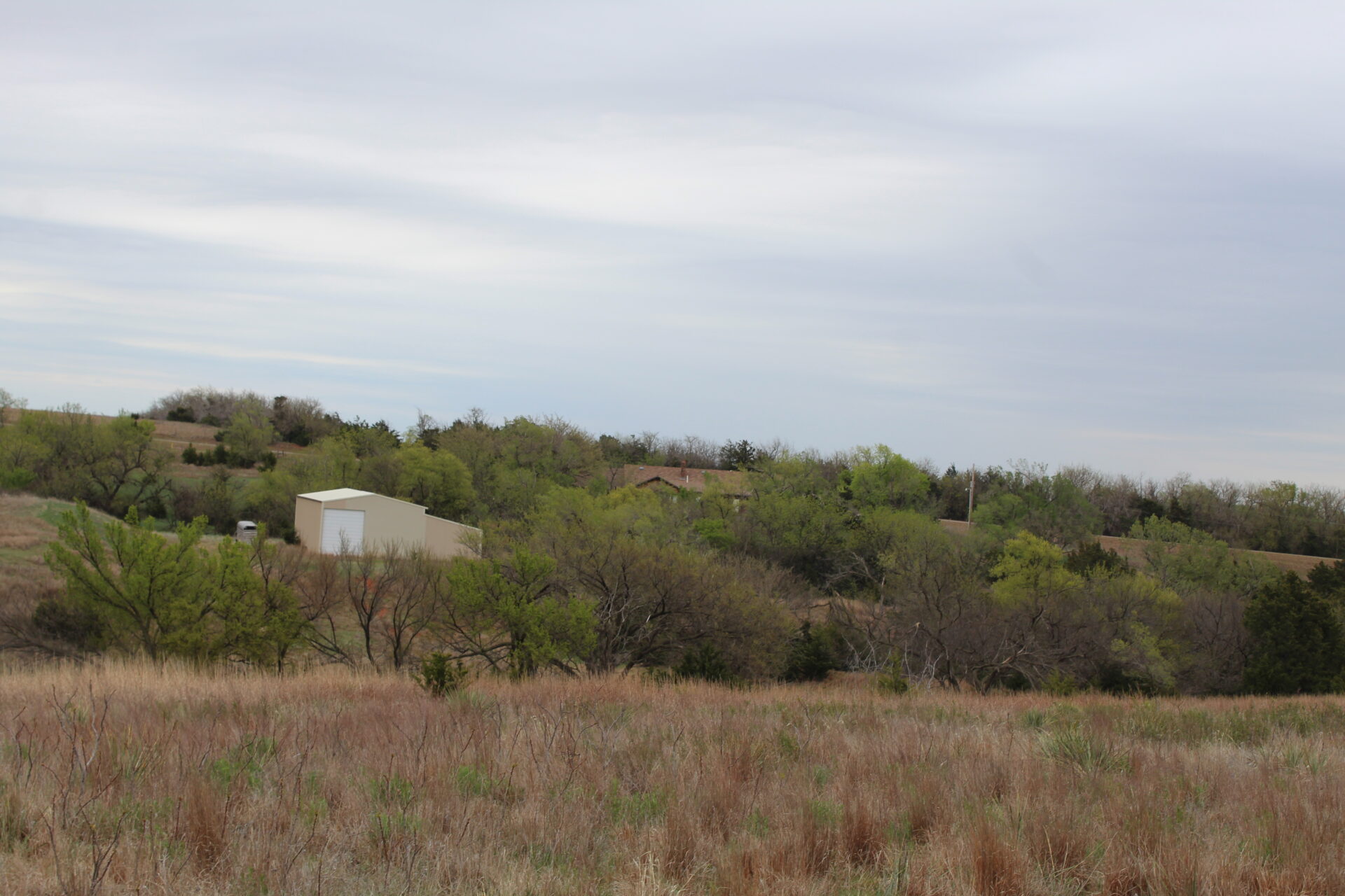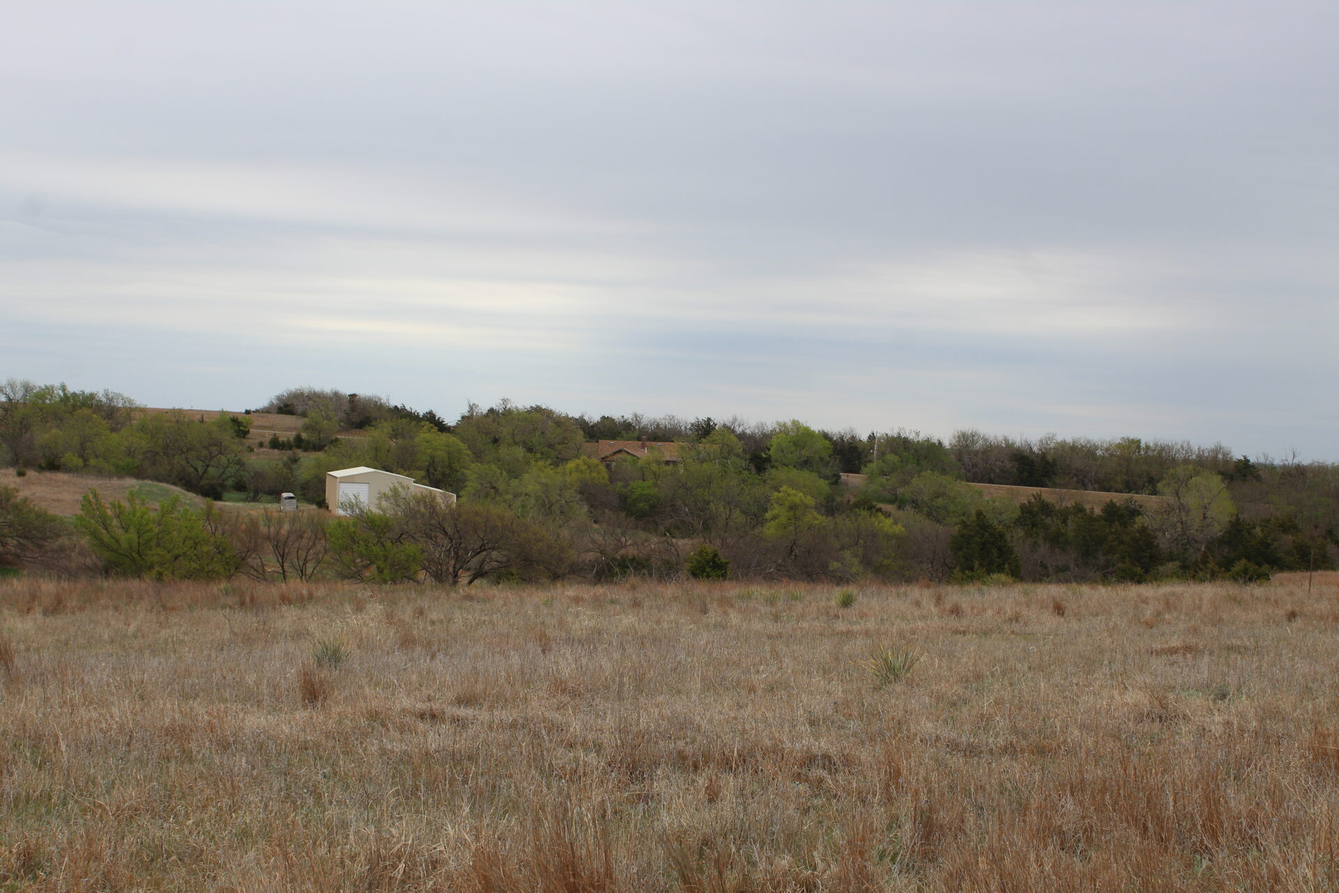 This property is immediately west of Tract 1 but also has HWY 34 access. This is a diverse piece of property with good native grass, 2 large dams, West Barnitz Creek, good fences, and a 2002 model 1,920 ft² steel building with electricity, concrete floor, plus a 20’ lien to on the south side.