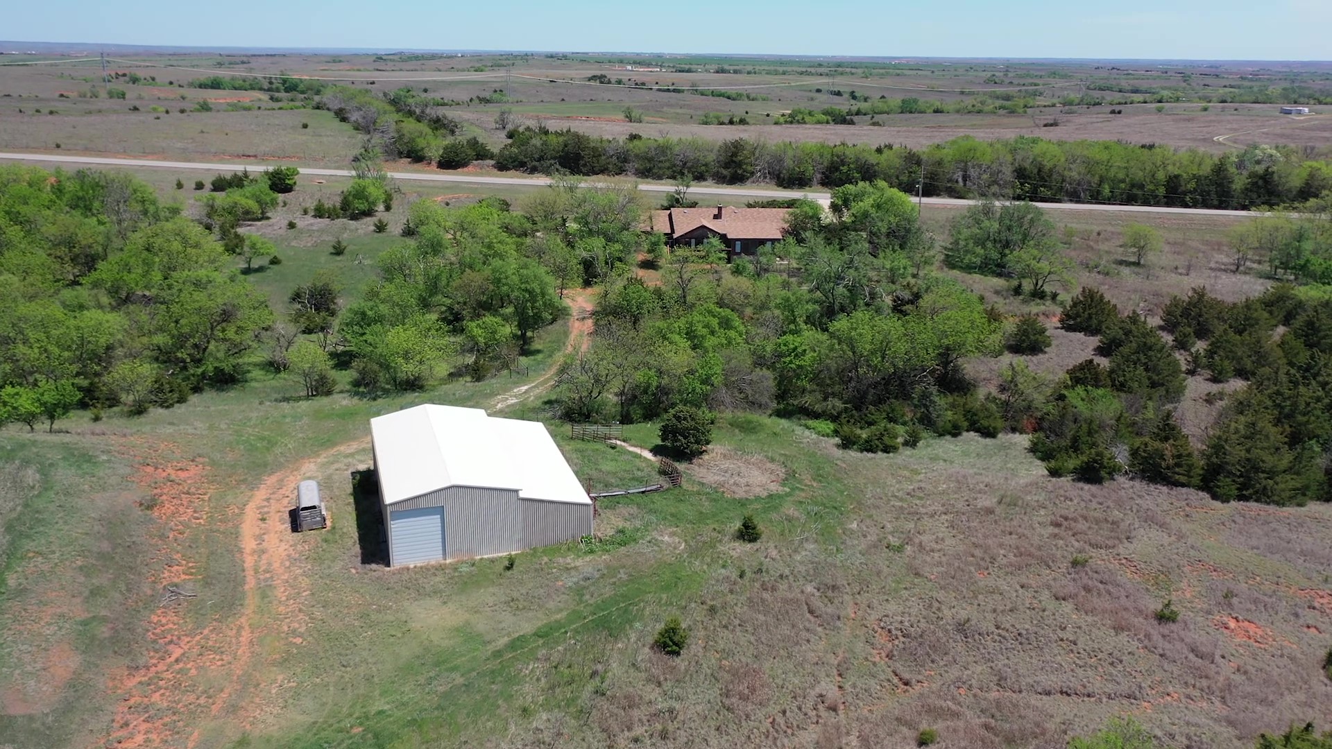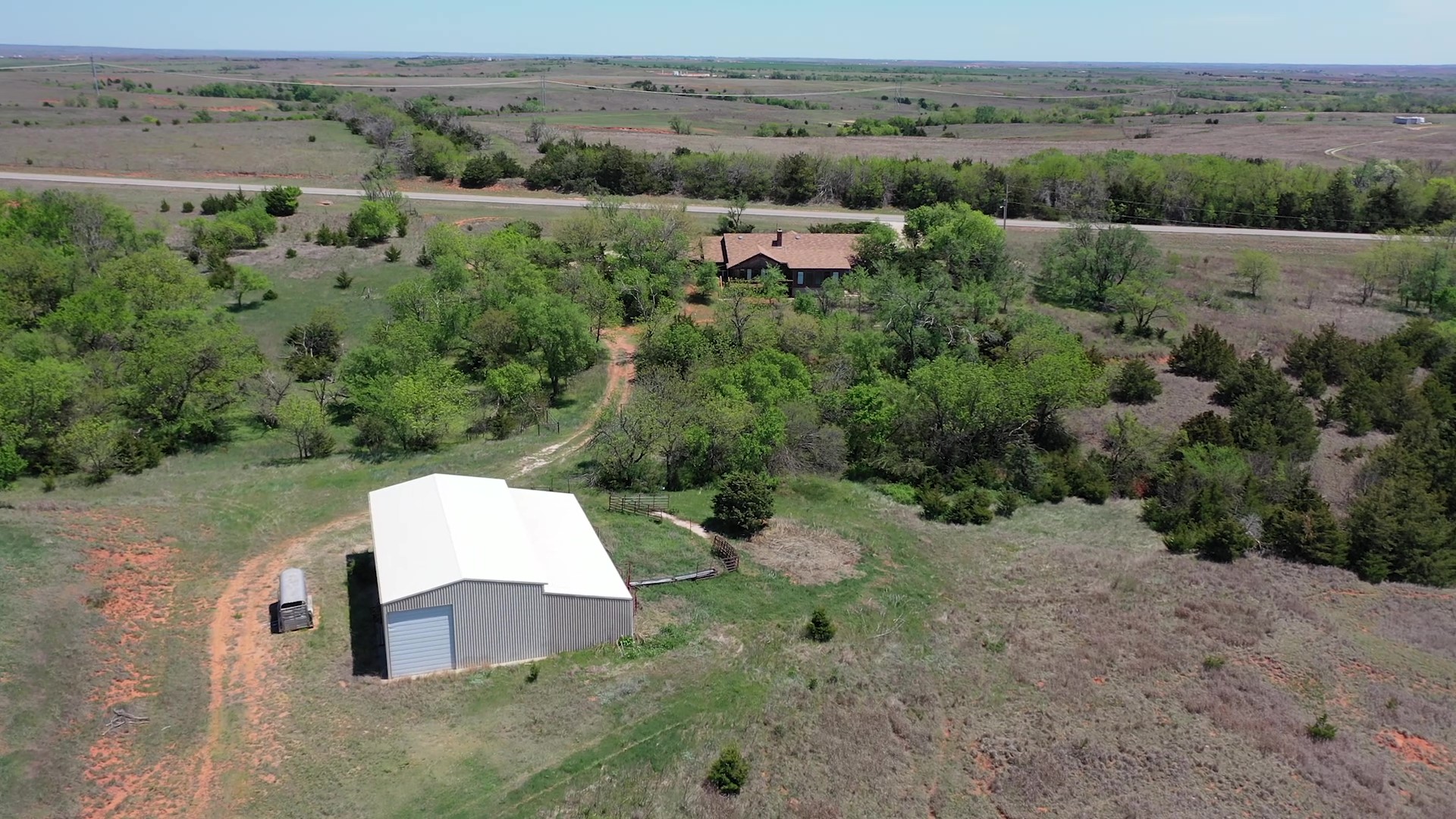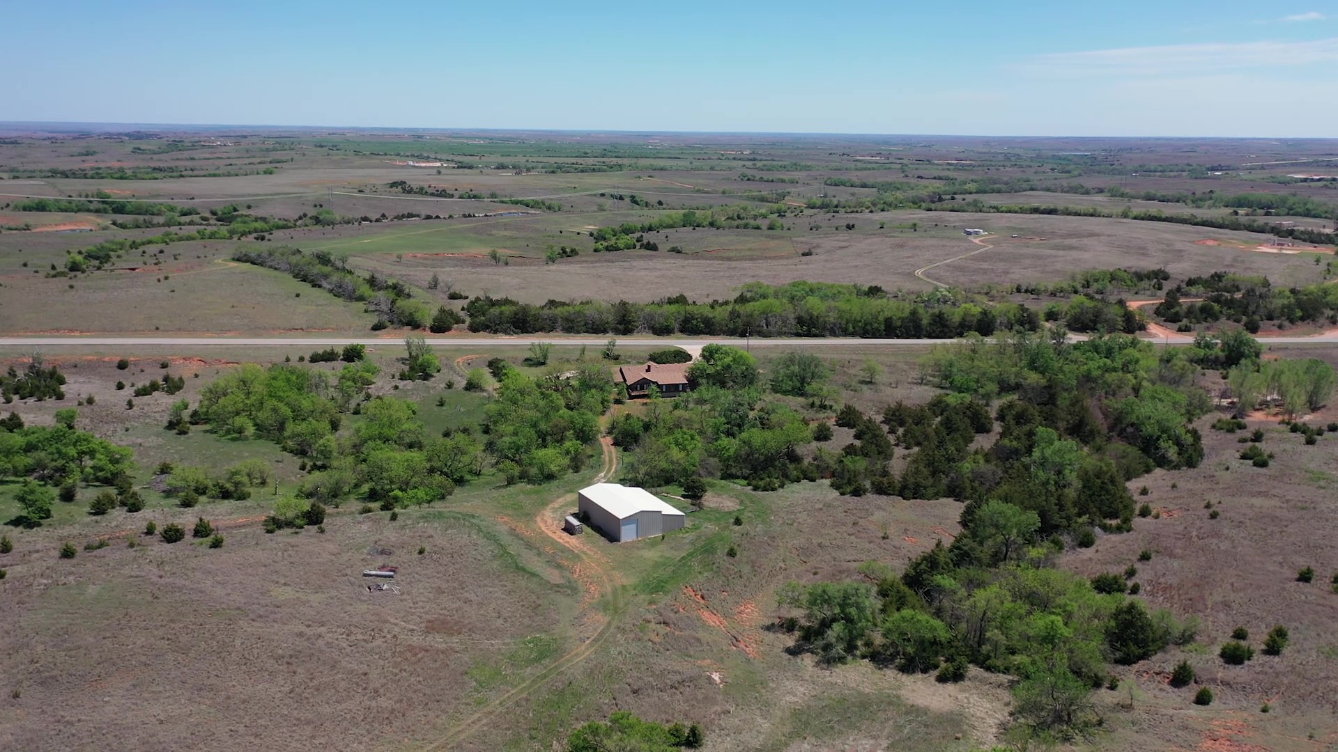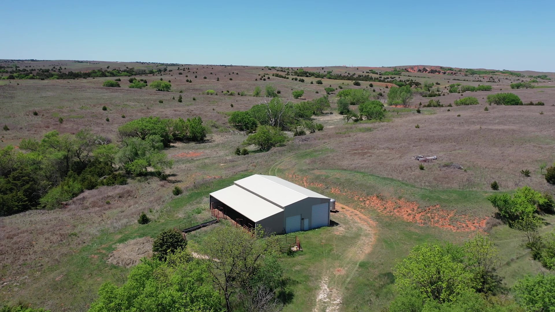 This property is immediately west of Tract 1 but also has HWY 34 access. This is a diverse piece of property with good native grass, 2 large dams, West Barnitz Creek, good fences, and a 2002 model 1,920 ft² steel building with electricity, concrete floor, plus a 20’ lien to on the south side.
