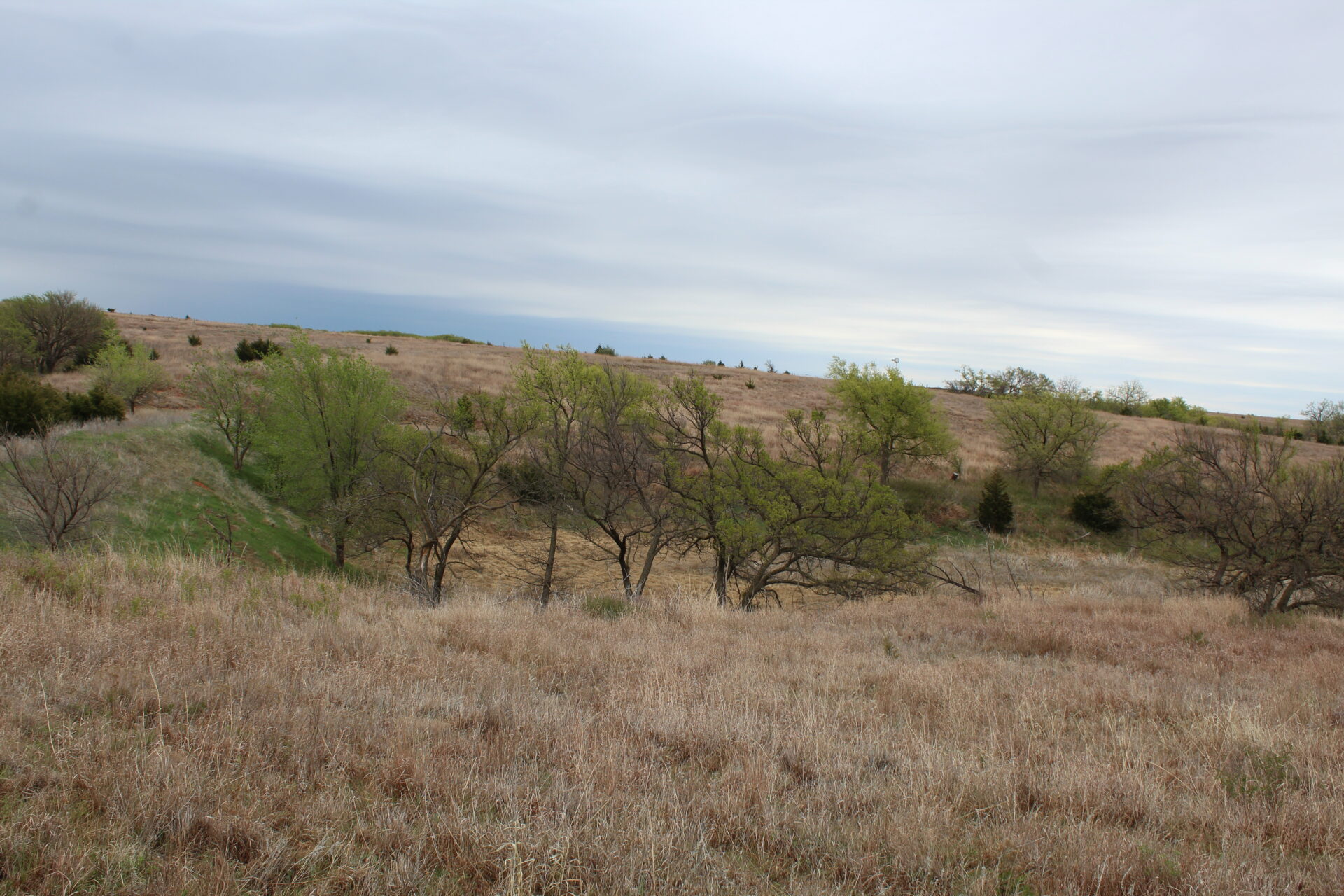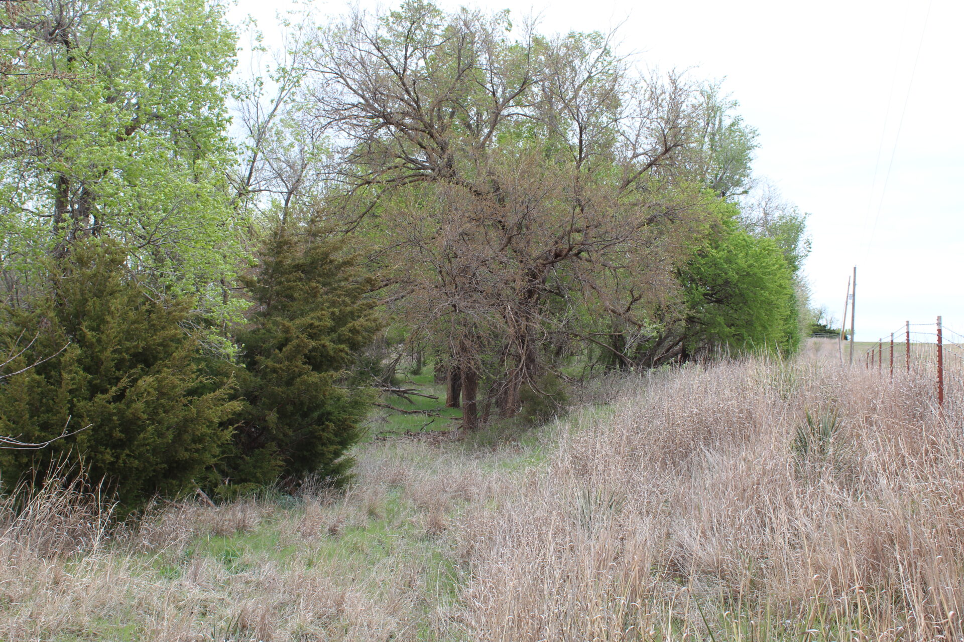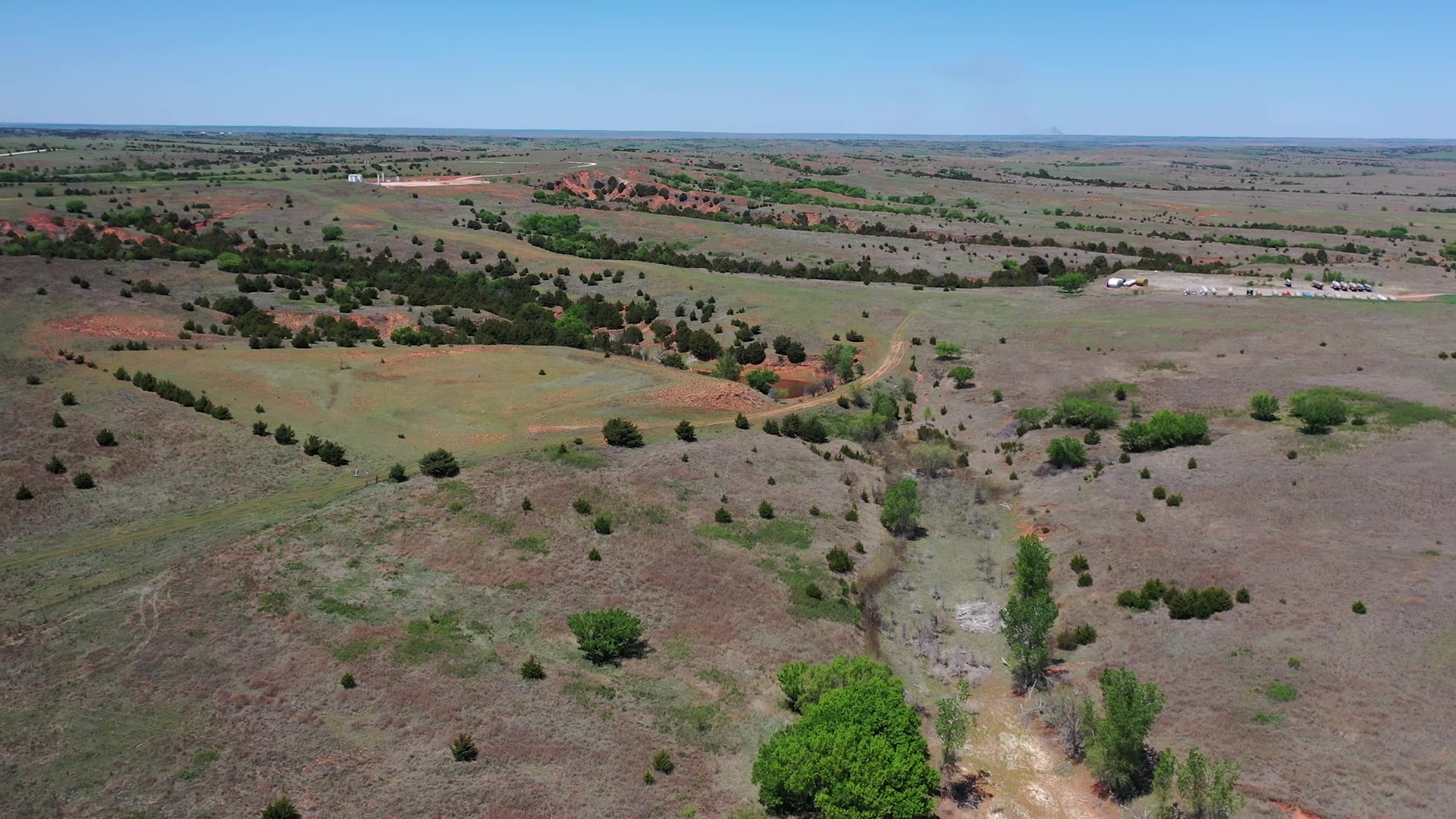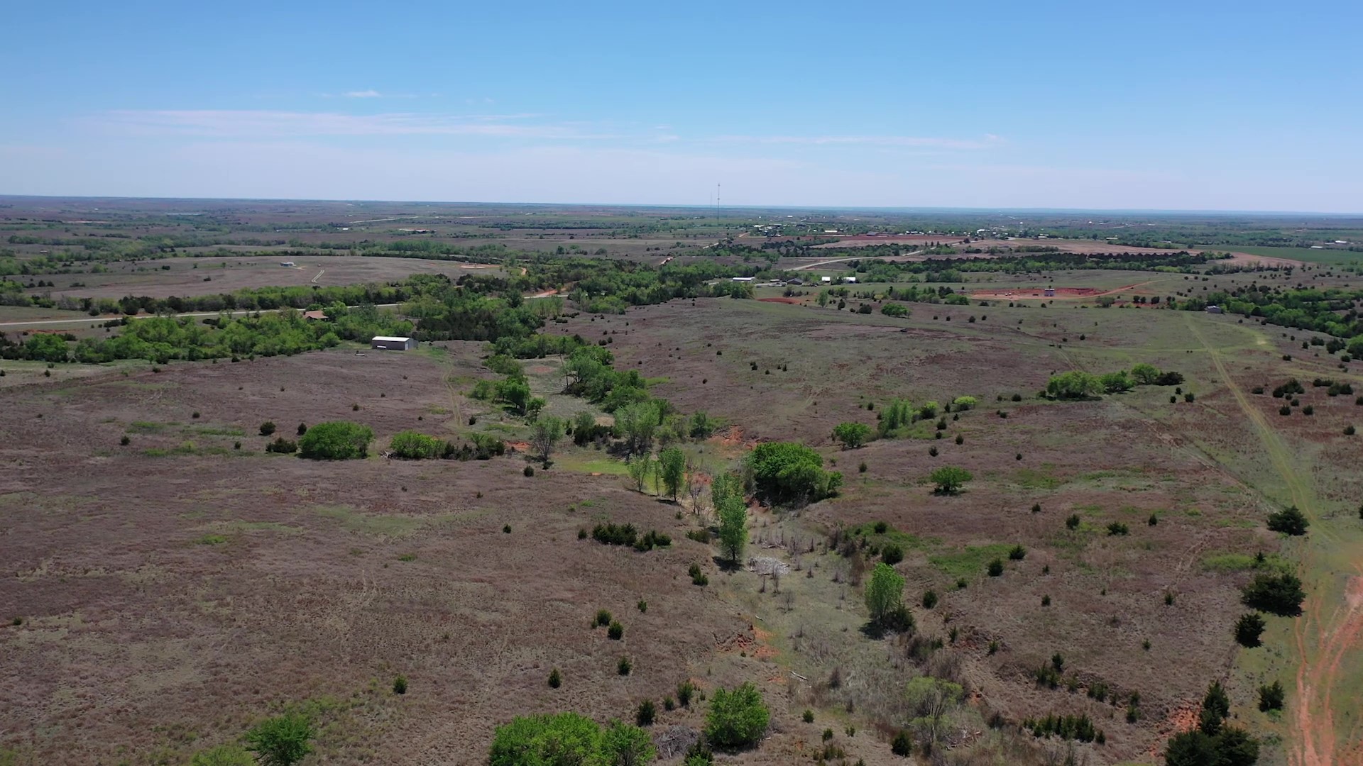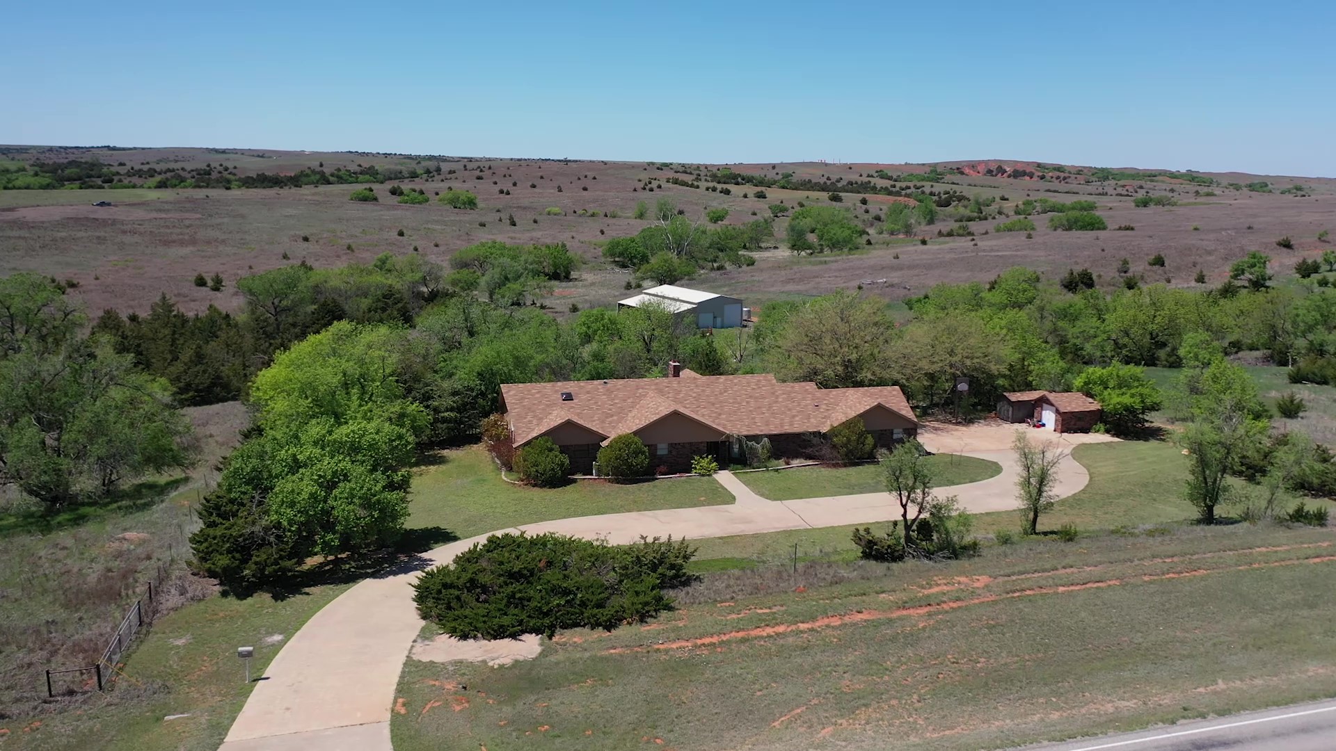 This property is immediately west of Tract 1 but also has HWY 34 access. This is a diverse piece of property with good native grass, 2 large dams, West Barnitz Creek, good fences, and a 2002 model 1,920 ft² steel building with electricity, concrete floor, plus a 20’ lien to on the south side.