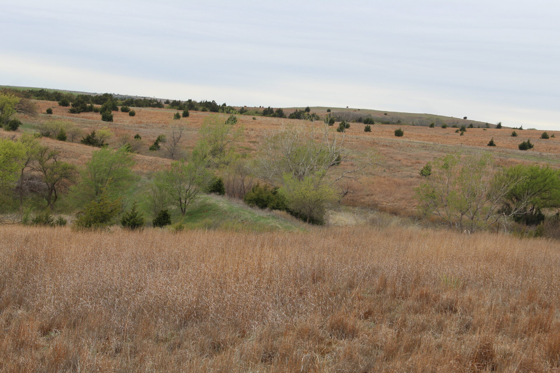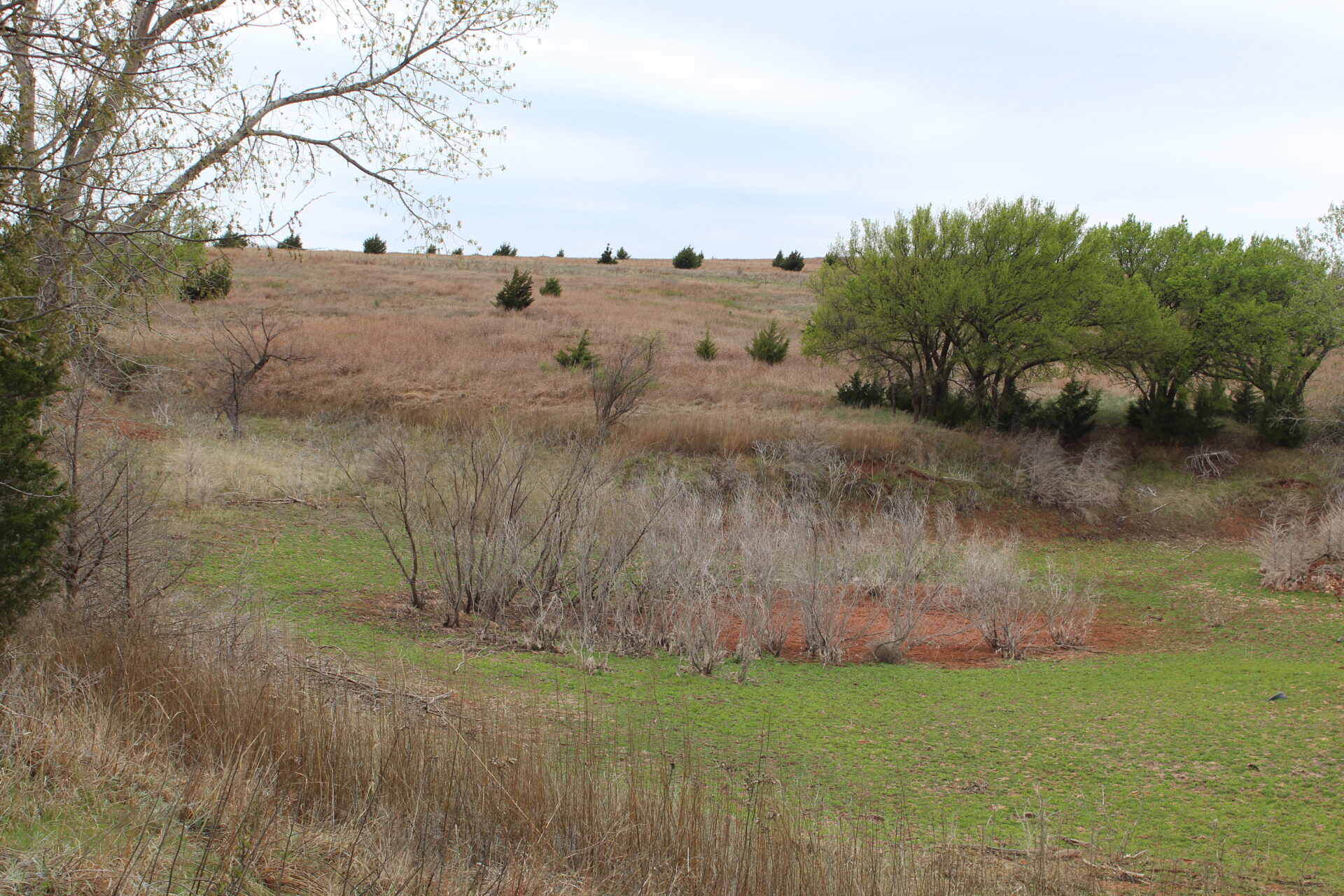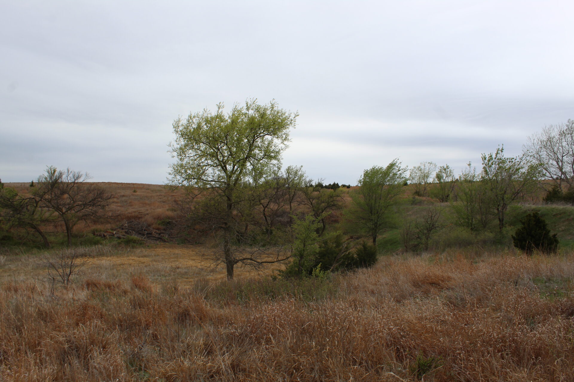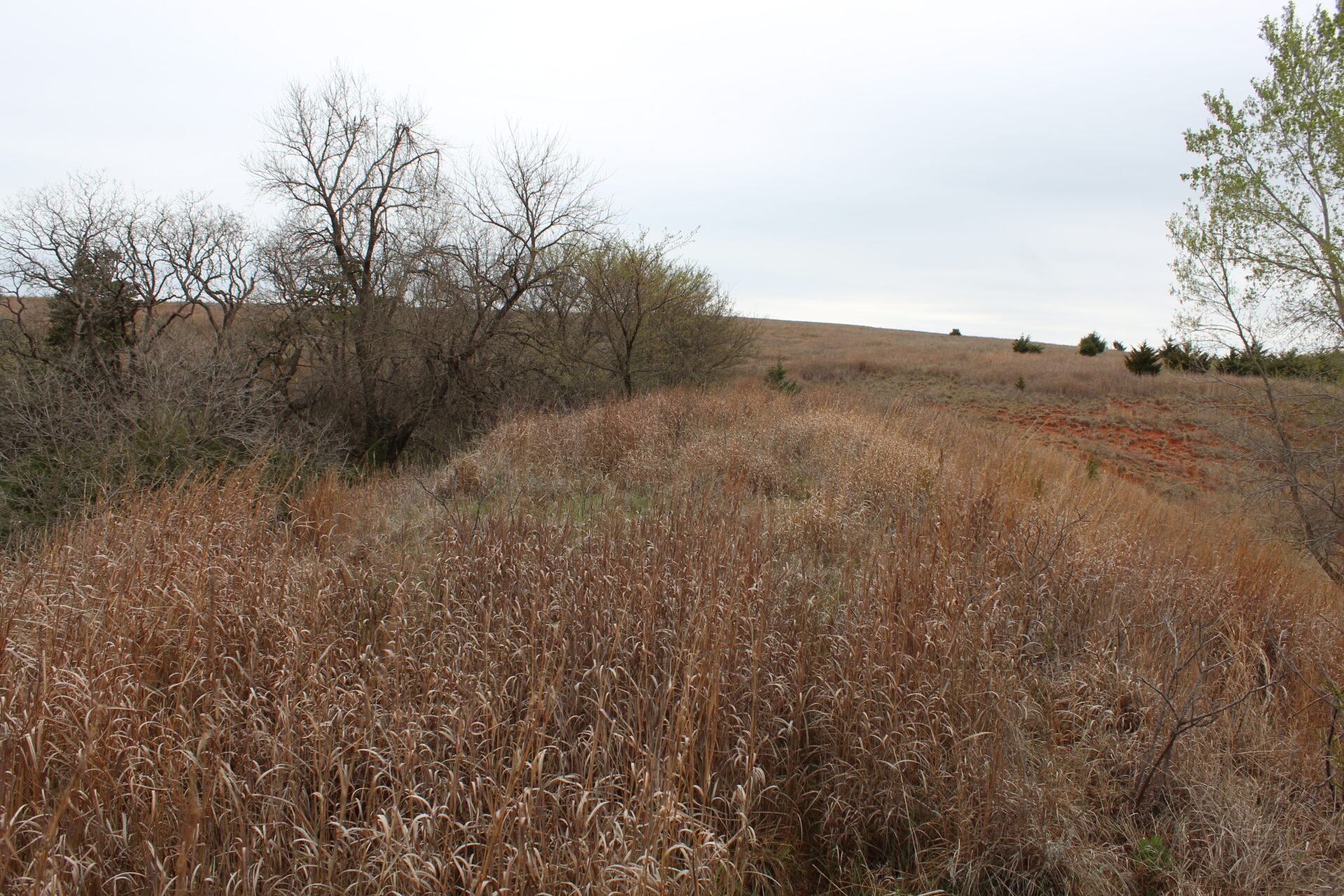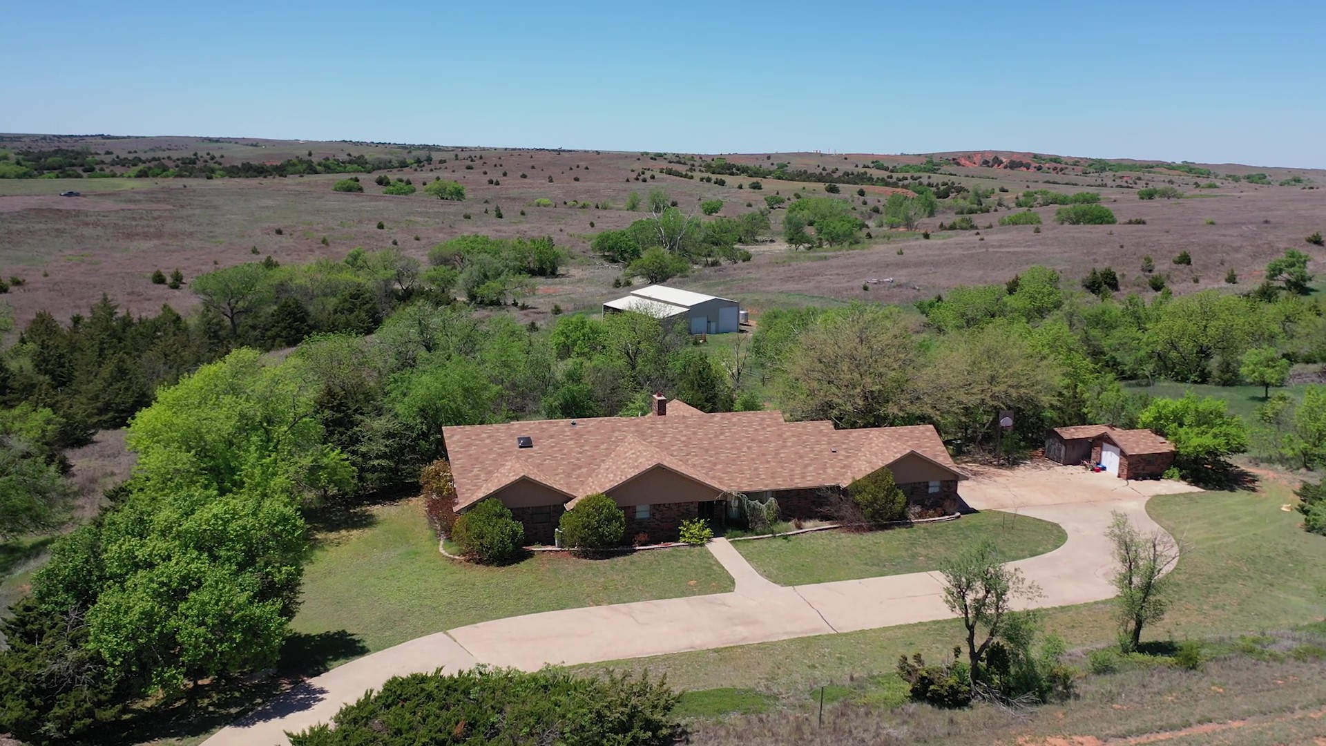 This property is immediately west of Tract 1 but also has HWY 34 access. This is a diverse piece of property with good native grass, 2 large dams, West Barnitz Creek, good fences, and a 2002 model 1,920 ft² steel building with electricity, concrete floor, plus a 20’ lien to on the south side.