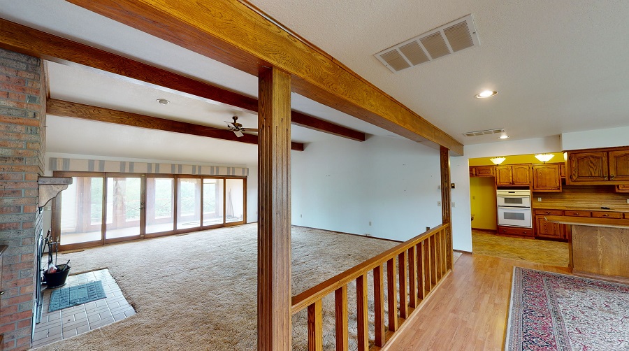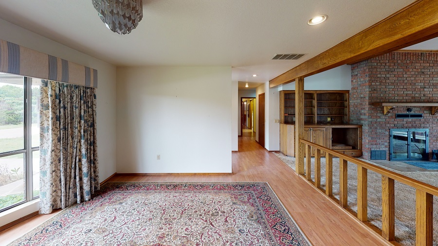 Dreaming of more space and a country home? This one has it all. Having an estimated 3,916 sq² of living space this home has many extras! The main floor offers a huge living room with vaulted ceilings, built in shelving, and a wood burning fireplace! The living room is open to the dining area and kitchen. There are 4 large bedrooms each with large closets. 4 bathrooms: Bath 1: Full bath with tub, Bath 2: Double sinks, toilet, shower, Bath 3: Double sinks, handicap shower & walk-in bathtub & joins 2 bedrooms, Bath 4: Double sinks, toilet, shower and joins a bedroom. There are lots of closets & a laundry room centrally located. The kitchen has lots of storage, a pantry, dishwasher, and adjoins a large room with sink & additional freezer space. Feel safe and secure in the 389 ft² finished basement with a ½ bath and a Bruno Electric Stair Lift. Get your exercise in the indoor Resistance Pool (15’x7’), relax in the sunroom, or outside on the wood deck! An oversized attached 2 car garage with storage space also compliments the home. In addition, the home has 2 storage buildings, concrete drive, and highway frontage. Be sure and come to the open house events or schedule a private tour! Buck Hutchens 580-273-3202 auction manager.