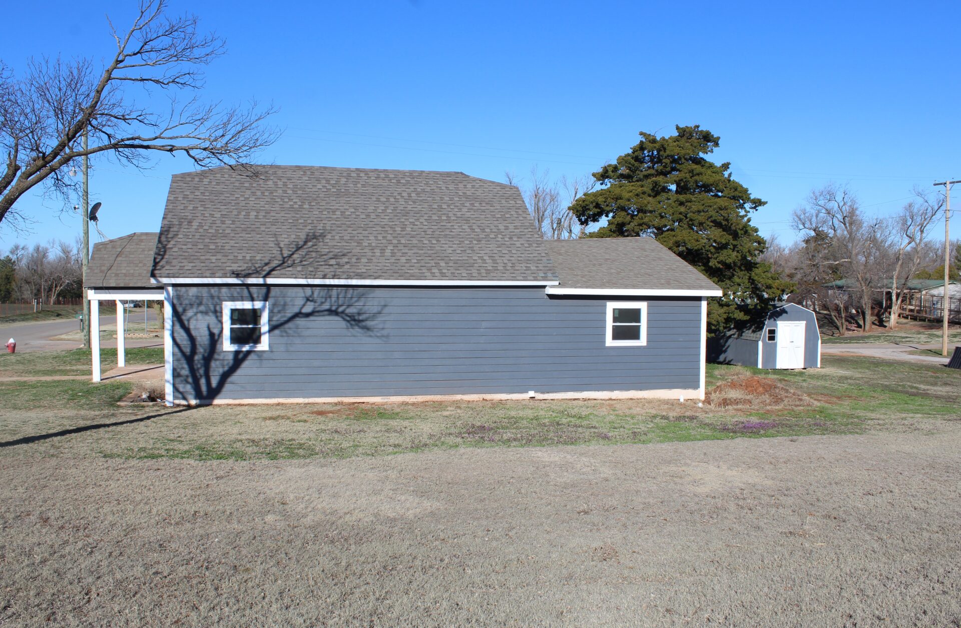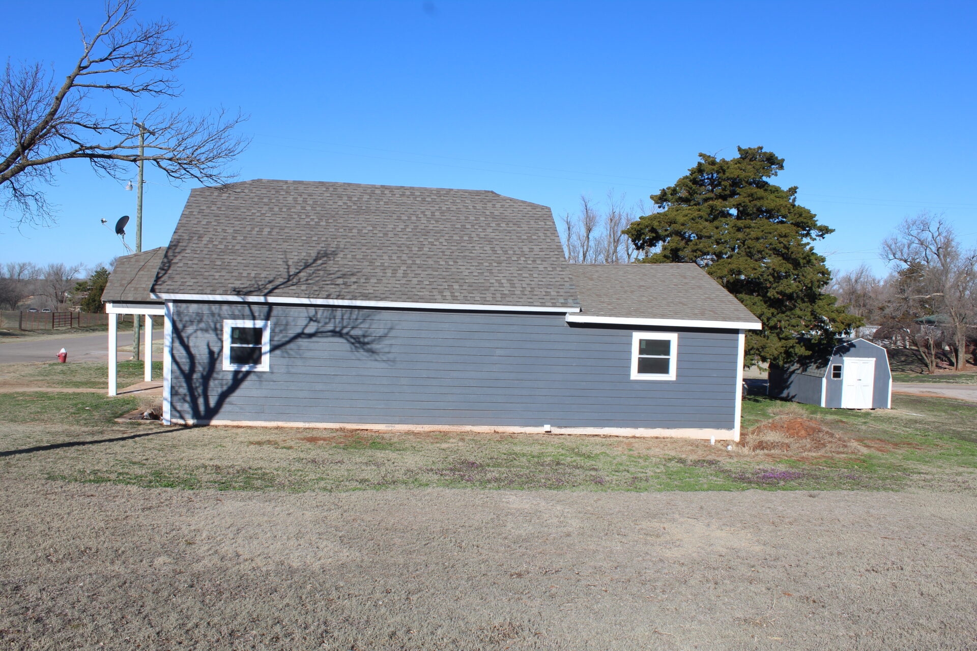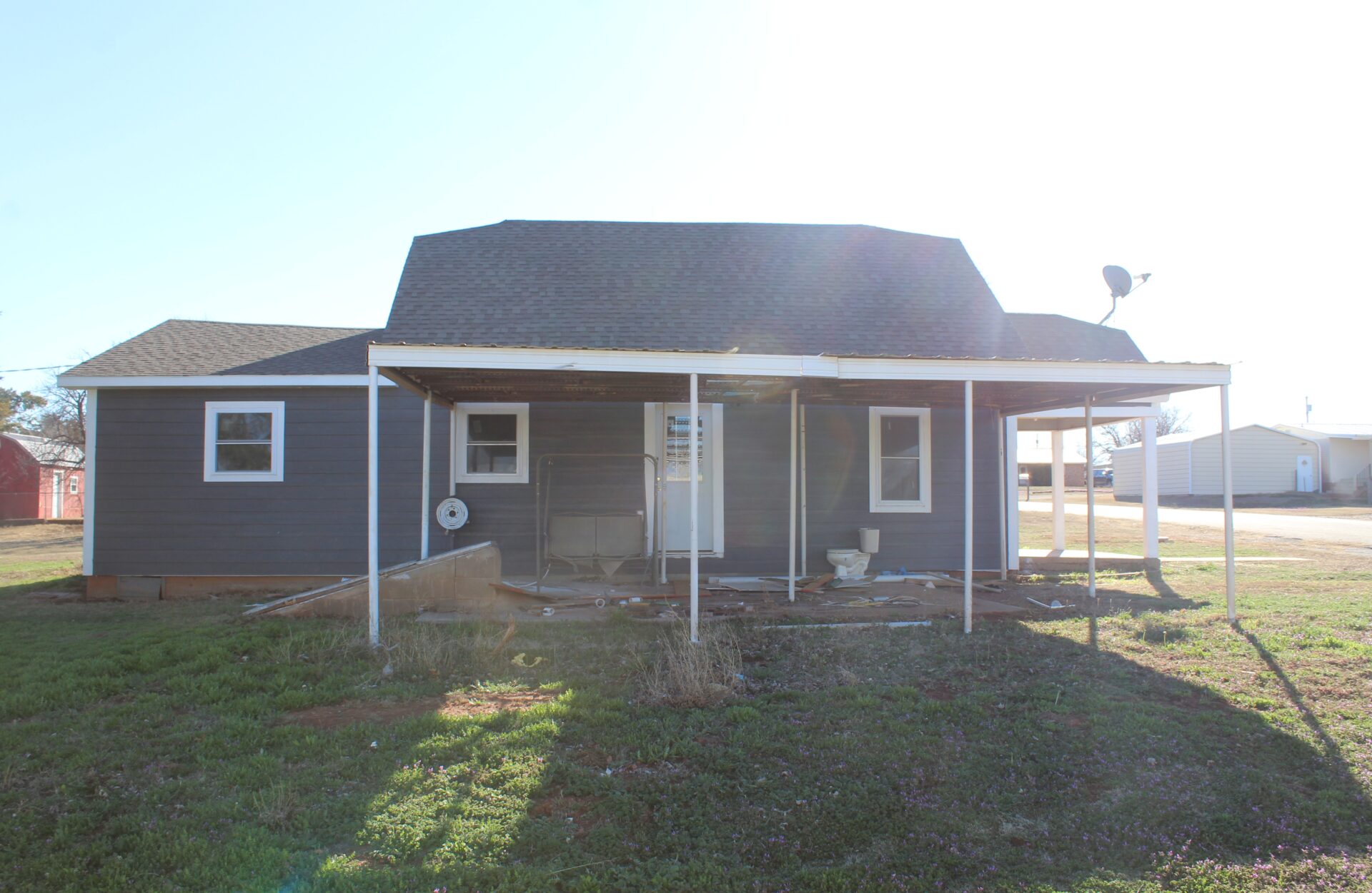 This 2 bedroom 2 bathroom home needs your finishing touches! A remodel in progress but awaits you to decide the final decisions! The exterior is recently repainted and received a new roof! The interior has undergone major changes including a very accommodating floor plan. New bathtubs, light fixtures, windows, and roughed in sheetrock. There is an attached carport, outside storm cellar, and storage building! Lots of possibilities and potential!