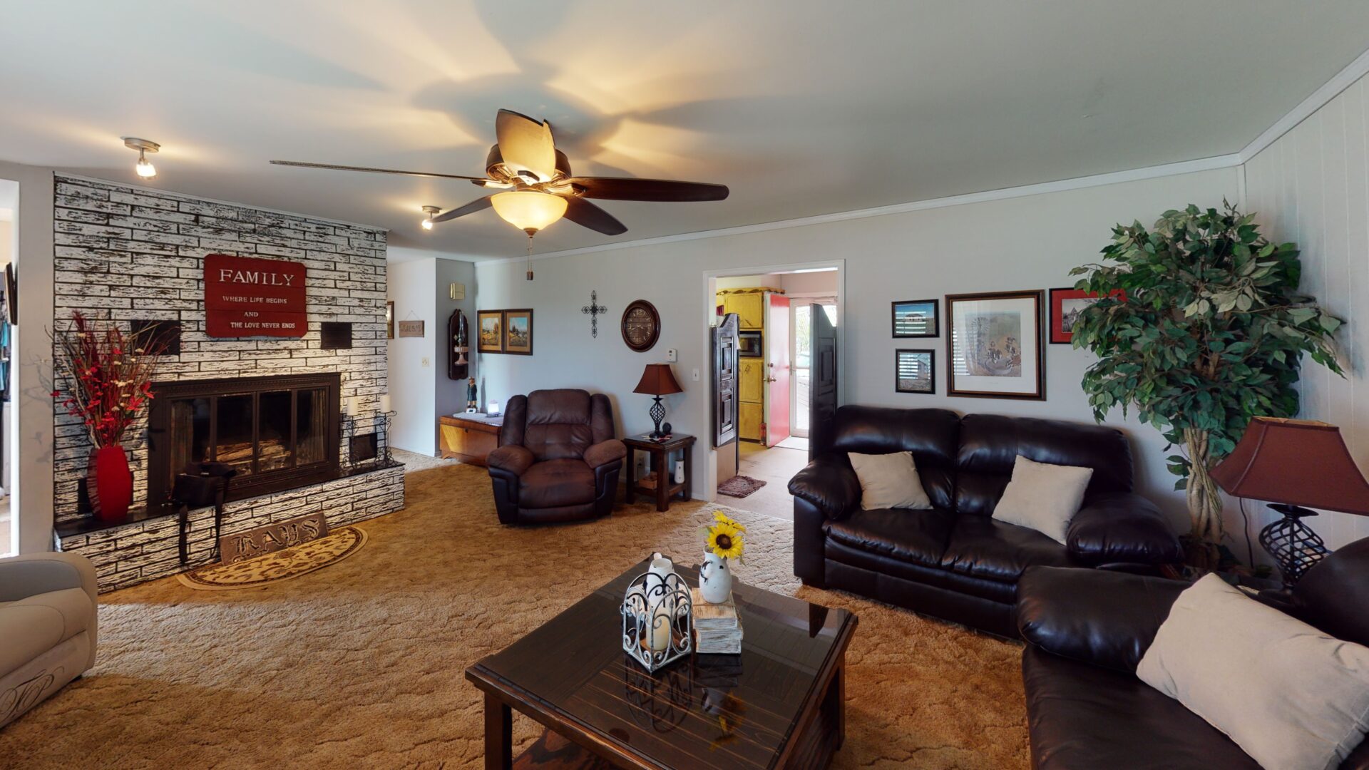 The Home: 1,850 sq ft of living area with 3 bedrooms, 1 full bath, 1 half bath, 2 living areas, and a one car garage. This home is well cared for and ready to move in.. The home has central heat/air, gas logs fireplace, new roof, and new septic. Keep cool in the large above ground pool complete with wood deck, outdoor bar, and TV. Double carport and outbuildings. The home is centrally located on the ranch and has a good driveway.