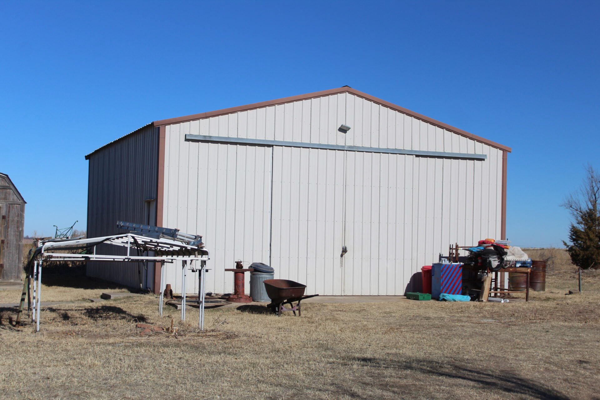 Tract 1: Great opportunity to purchase an established home and shop on 10 acres in Woodward County. This home offers 3 bedrooms and 2 baths with a two car garage. The home has a large living room, dining area, custom wood kitchen cabinets, and lots of storage space. The home is reported as 1,453 ft². In addition there is an inground storm shelter, 2 water wells, double carport, and a 30’x30′ wood framed shop with concrete floor and electricity.