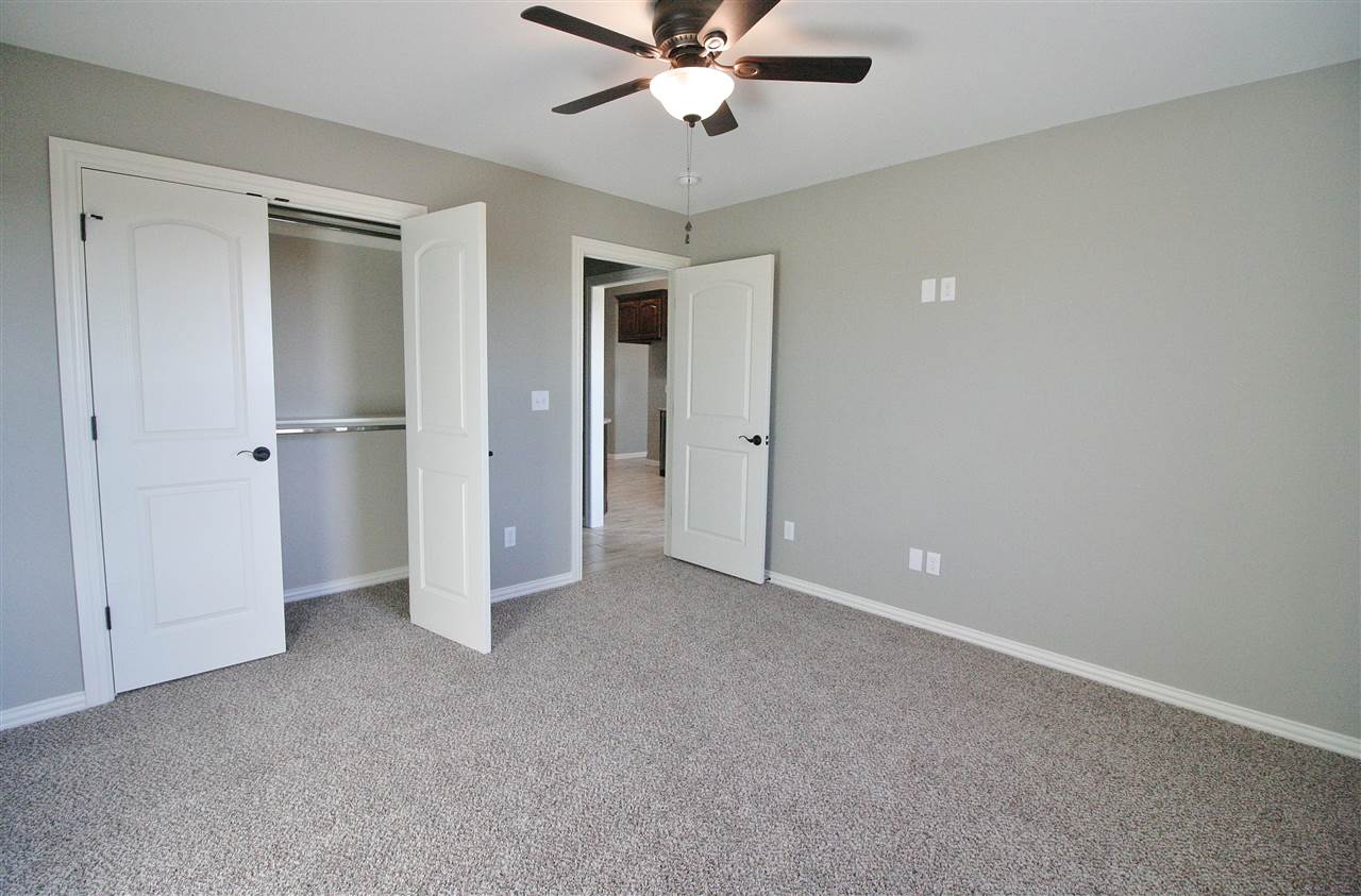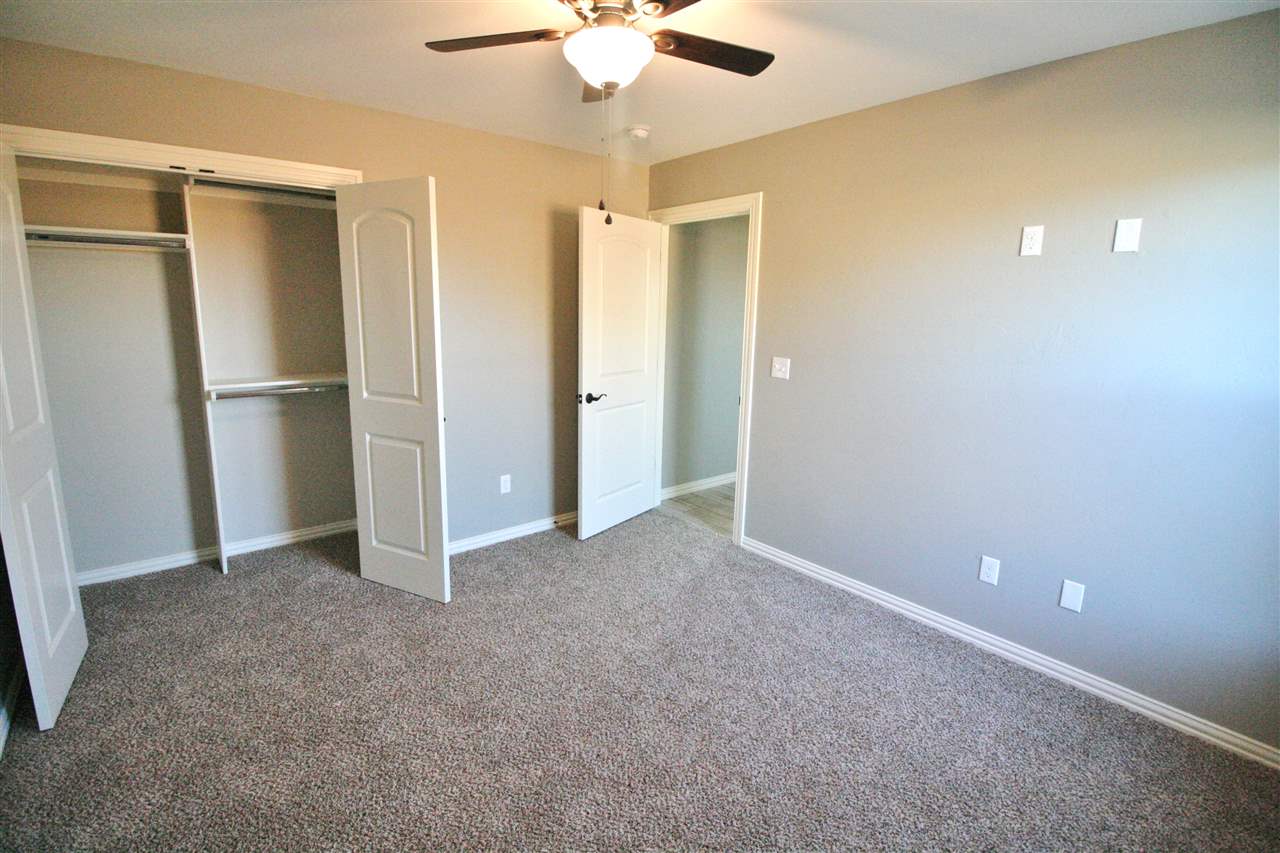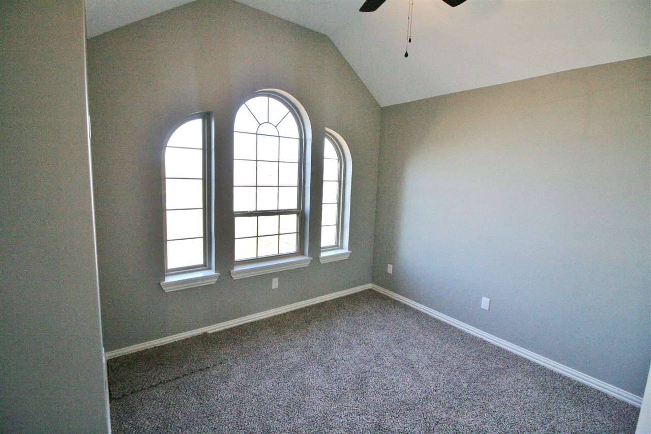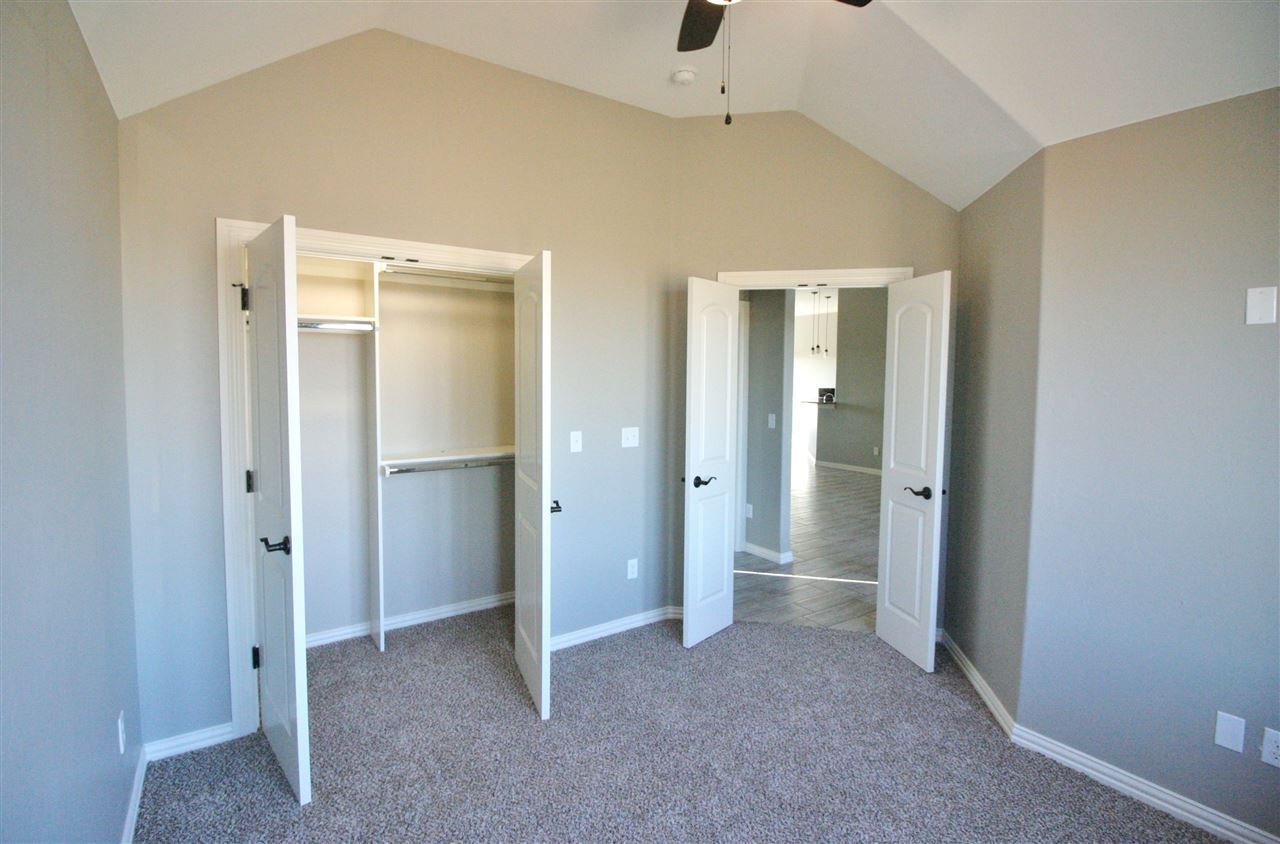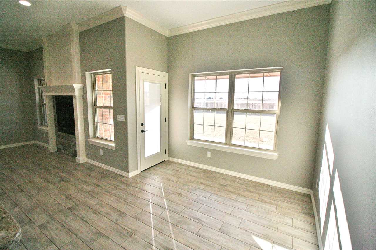 This open-kitchen concept home offers 3 bedrooms, with office or 4th bedroom, 2 baths & a 3 car garage with in-ground storm shelter. Walk in to a foyer with coat closet then step in to the grand living room with fireplace. Enjoy the 10 ft ceilings throughout and trace ceilings in the master bedroom. The master bathroom boasts of a large corner soaker tub & separate tiled shower, 2 separate vanities and huge walk-in closet. Beautiful custom cabinets throughout! Large fenced in backyard with sprinkler system.