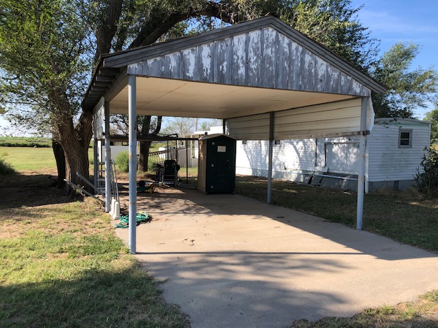 A 2 bedroom home with Central H/A and a large steel carport, a storm cellar, and a single wide mobile home that has 2 bedrooms and ground source central H/A on 8 lots with a big back yard in a quiet community.