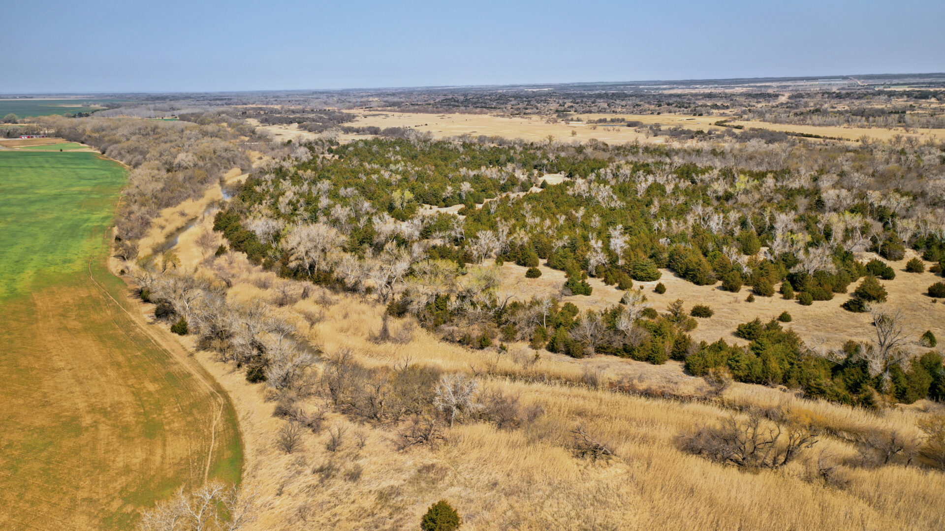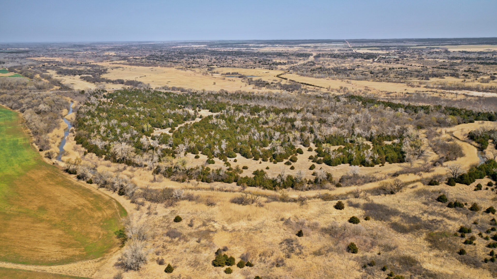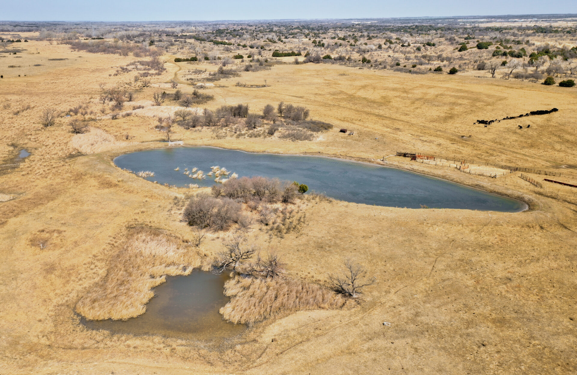This ranch has beautiful grass bottoms with a surface water pond and several acres of sub irrigated land. The ranch is fenced and cross fenced with several water wells. The South Canadian River touches the south and southwest sides creating a great situation – the land receives all the benefits of having the river yet it doesn’t segregate the property! The north end supports a rolling sandhill type terrain with good native grass and lots of trees providing good livestock grazing and excellent hunting of deer, turkey, and wild hogs. Black top county road on the south end and county road access on the east side provides easy access to the ranch. Don’t miss an opportunity on an absolute beautiful ranch.