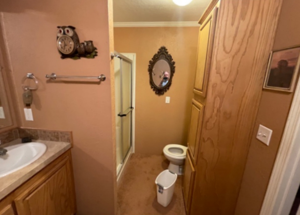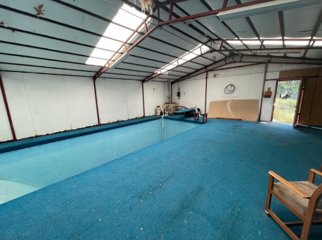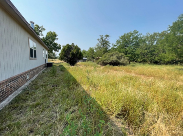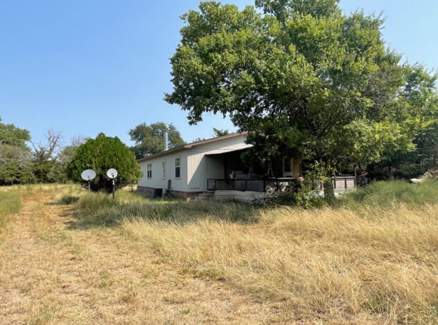 The epitome of peace and quiet, this property has a LOT to offer! The home sits close to a creek and provides a very desirable, peaceful sitting. The 2007 Solitaire is a 3 bedroom, 2 bath with a large covered patio and a lean-to that is the full length of the home which allows room for 2-3 vehicles and covered access to the home. There is 1,568± sq. ft. of living space and the home is in good condition. In addition, there is a steel constructed shop building with sliding door access on the east and south. The west end of the building is wood construction and the rest is steel. This is a very nice shop building with overhead doors and an office/work area. In the backyard, there is a large storm basement with a covered entrance and an enclosed pool room 30’x40′ that includes a bathroom. On the west side of the home, across the drive, is a building that serves the well house and general storage. This home site is secluded and cannot be seen from the very well-kept blacktop, county road 49. The privacy is like a little oasis setting. The creek runs on the west side of the property and provides several beautiful trees. The majority of the road coming into the property is hard surfaced and there is an electric meter and runners for a mobile home setting south of the main home site. The land is native grass with a rolling type terrain NE of the homesite is a big bottom with improved and mature grass this area could easily be a farm ground for cattle or wildlife. There is a water well at the home with several freeze hydrants around the home providing livestock water.