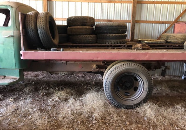 - 1949 F700 Ford Truck w/ V8 Engine, 330, Hydraulic Lift, w/ 14’ Bed, Starts & Runs Good