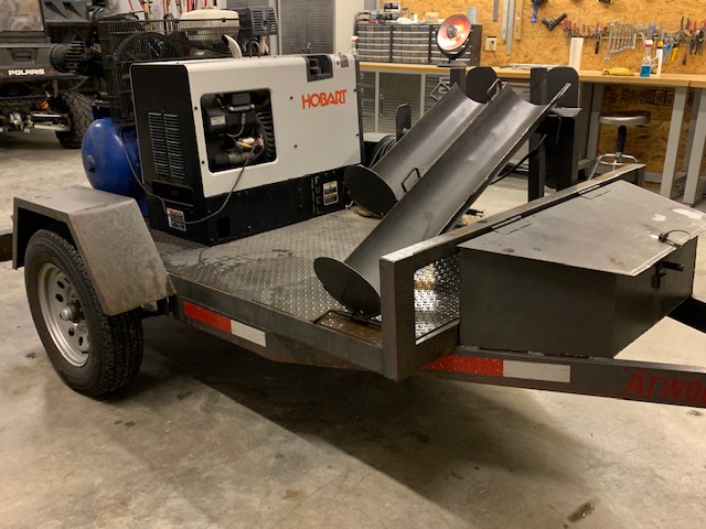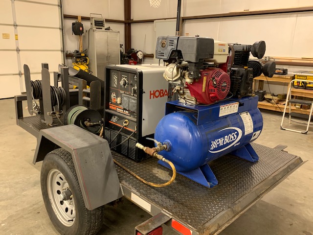 - Hobart Champion Generator Welder on Trailer w/ 3 Powered Air Compressor on 200 Miller Factory Welding, Like New