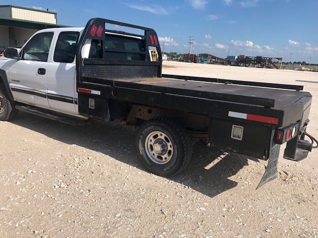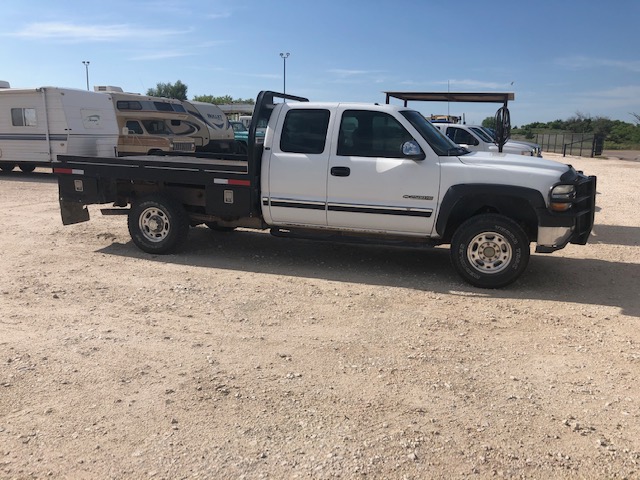 - 2001 3/4 Ton Chev Ext. Cab 4×4 w/ProFab Bed, Hay Spikes, 1600# Cake Feeder