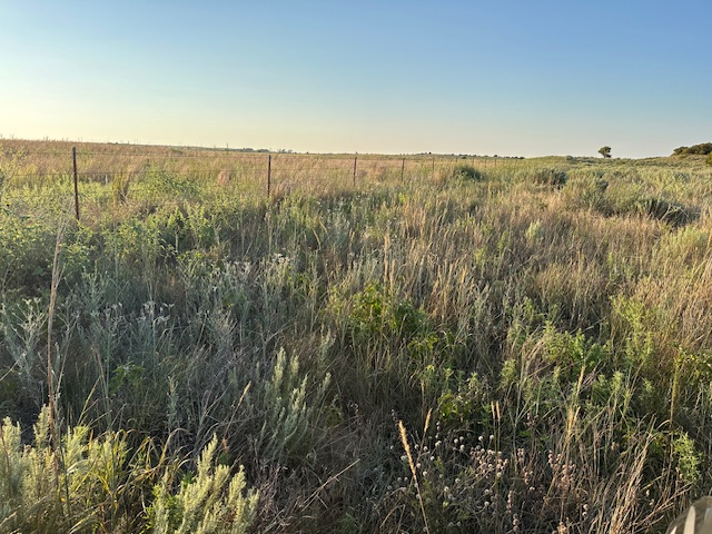 This is a native grass tract with a mild rolling type terrain. The native grasses and trees on the west side make excellent deer and wildlife habitat. There is county road frontage on the east side and fences on the east and west sides of the property. Electricity runs along the county road on the east side. Because this estate was divided up, the land does not have a water well however ground water in the area is readily available.
