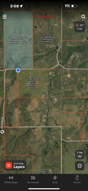 Land Location: From Hwy 412 and County Road 228, go 4.75 miles north to the southeast corner of the property. Or, approx. 5 miles east of Quinlan on the blacktop County Road 36 (called the Belva Blacktop).